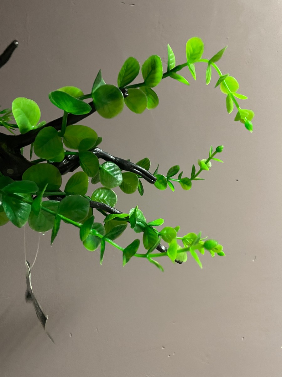 Аквариумная декорация BARBUS DECOR 208. Коряга красивая с зелеными листьями №208. 23х17х15см