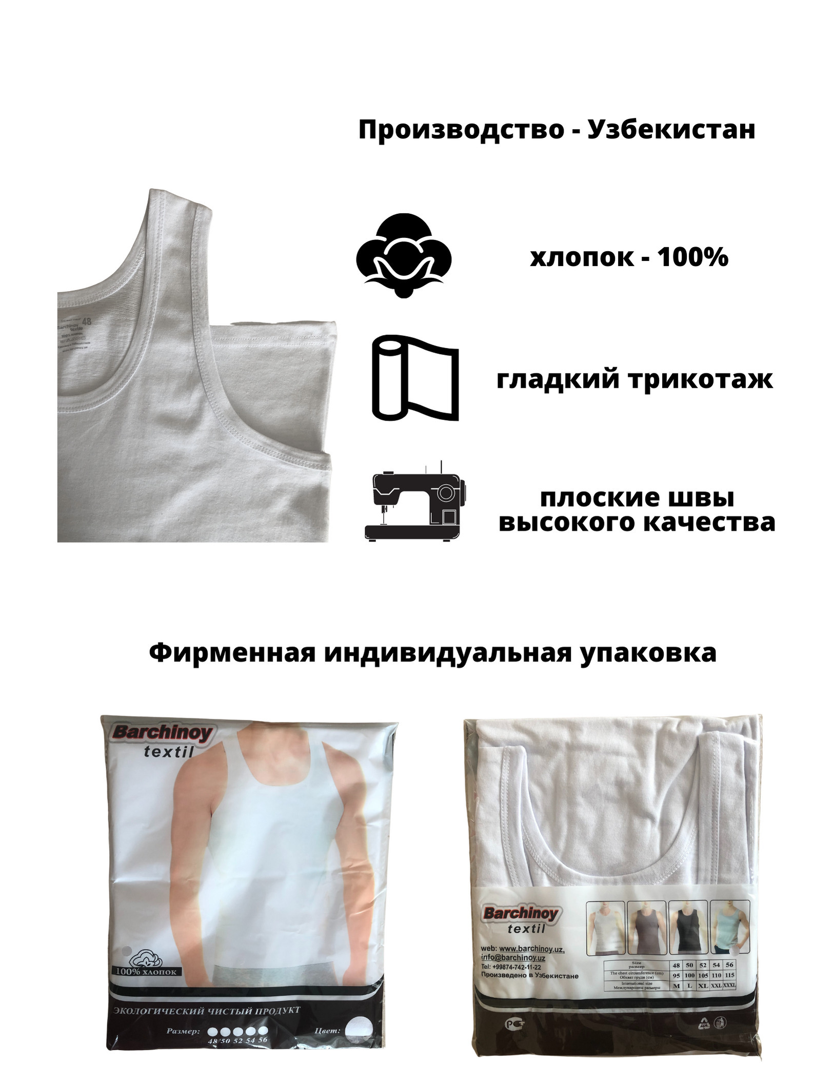 Майка бельевая Barchinoy textile, 1 шт