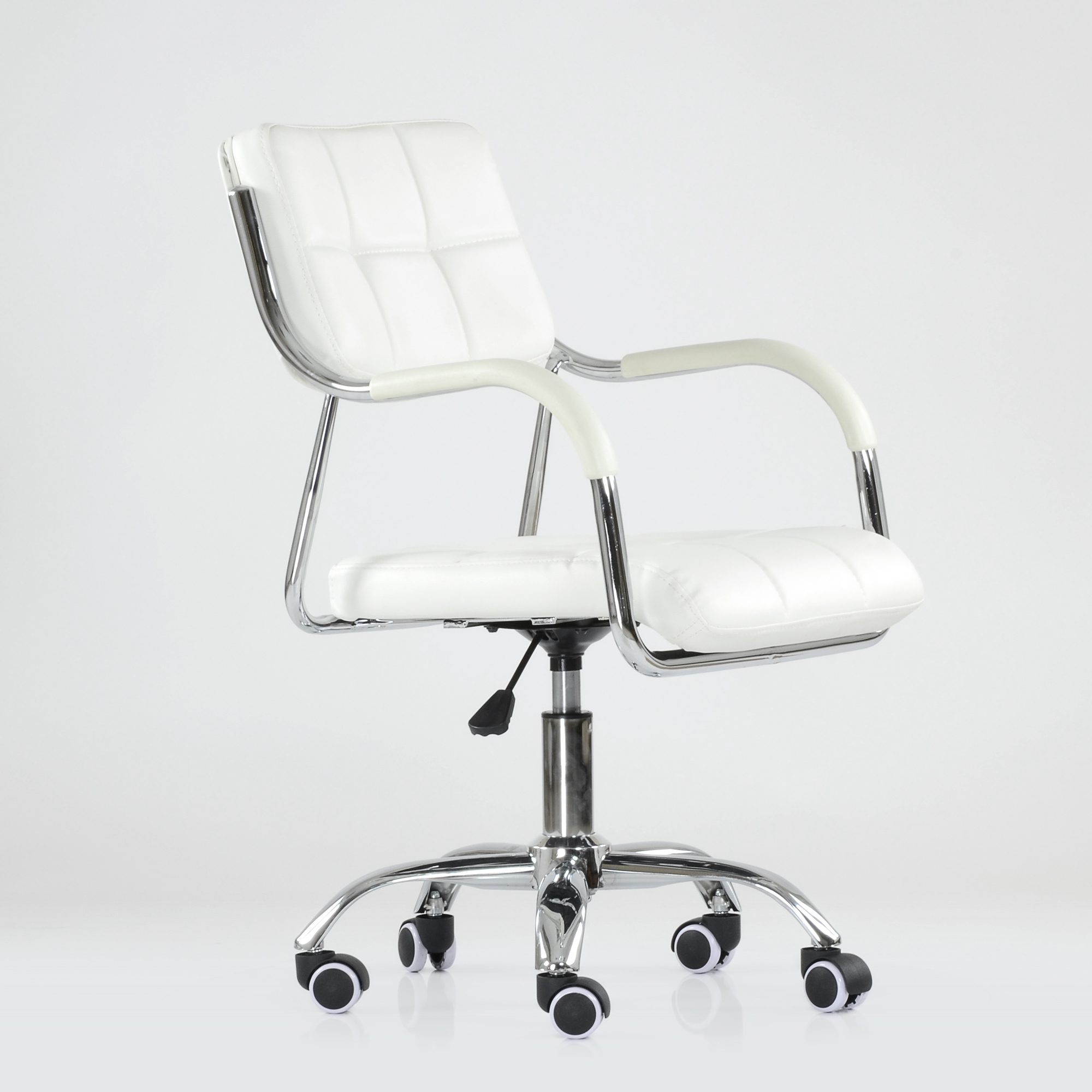 Офисное кресло Barneo K-29 на колесиках, хром, экокожа, Экокожа, белый