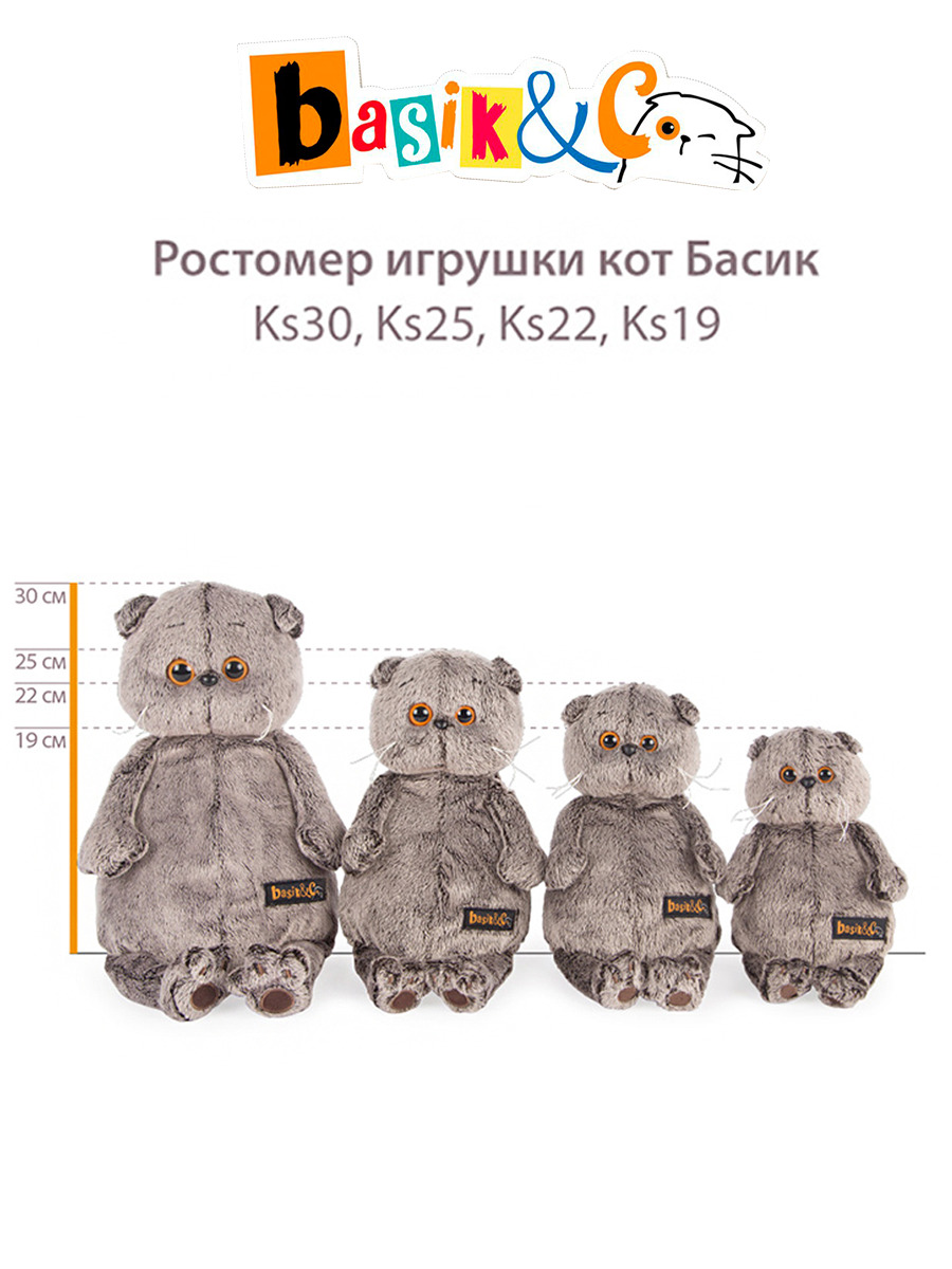 Мягкая игрушка Budi Basa в подарочной коробке - кот Басик в рубашке и вельветовых брюках, 30 см