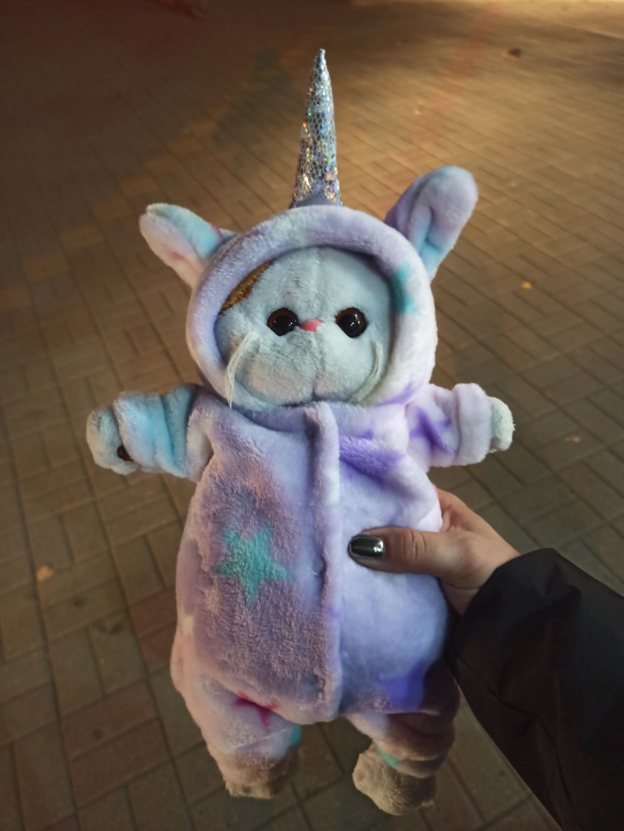 Мягкая игрушка 18 см Basik&Co, подруга кота Басика - Зайка Ми с розовой подушкой - единорогом