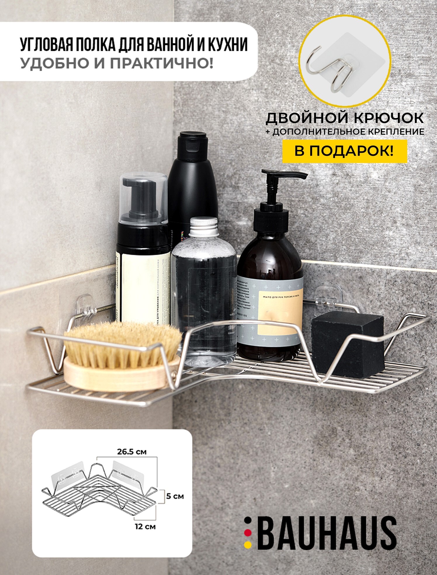 Полка для ванной угловая на силиконовом креплении/ Полка металлическая для кухни/ Полка в ванную