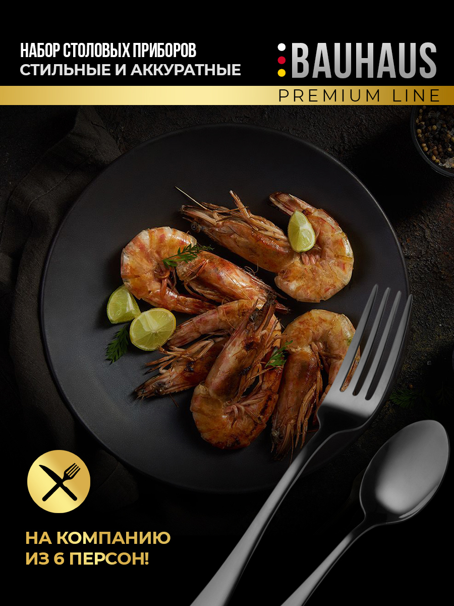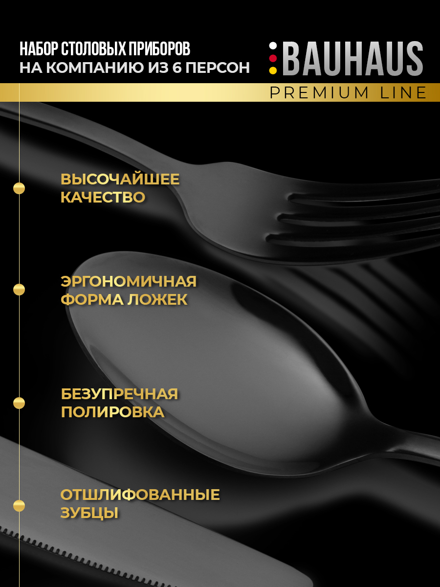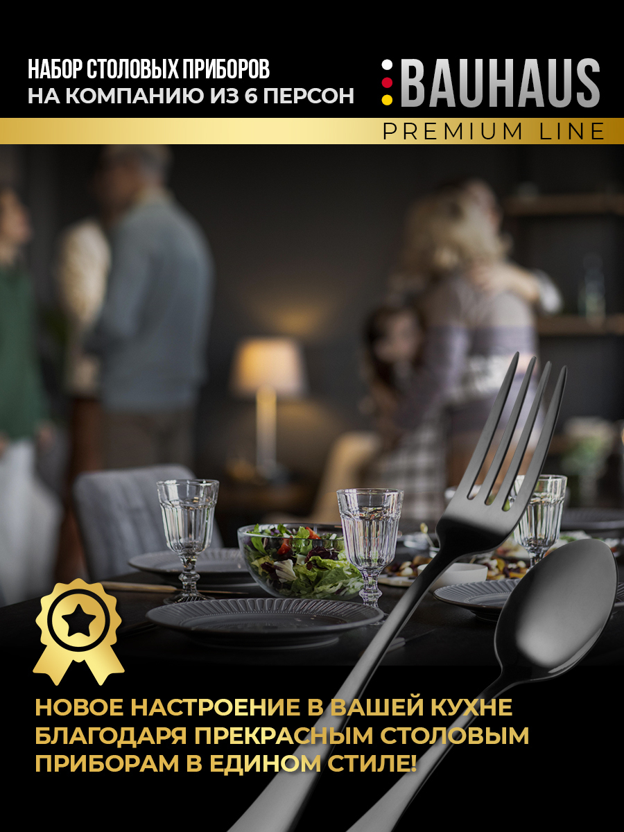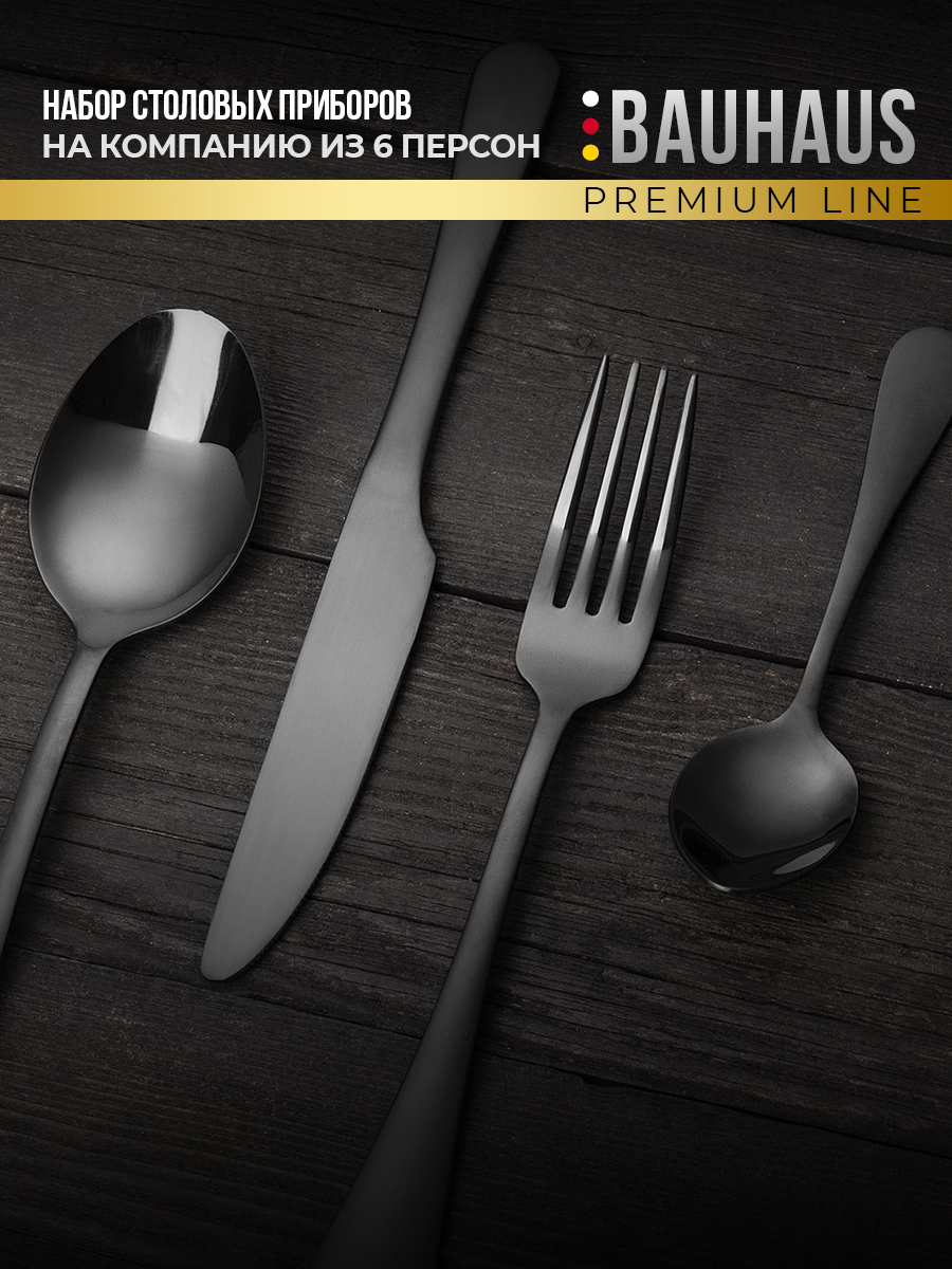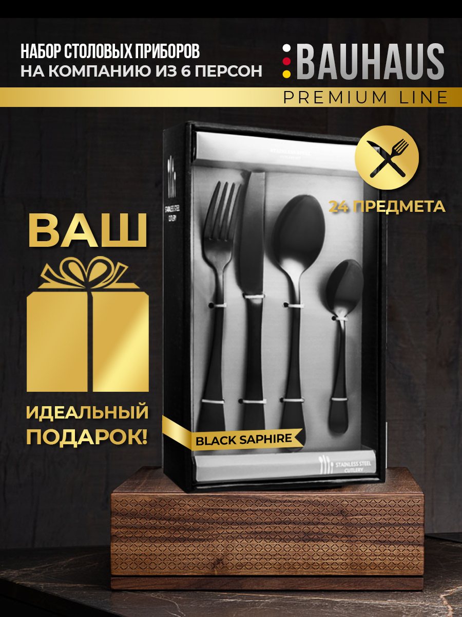 Набор столовых приборов 24 предмета / Подарочный комплект на 6 персон / Премиум набор черный