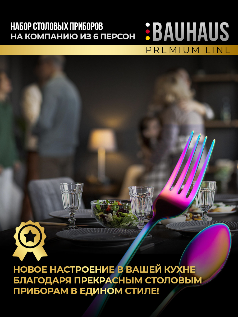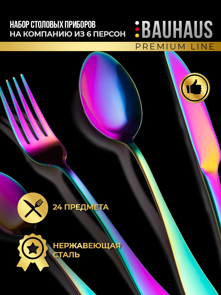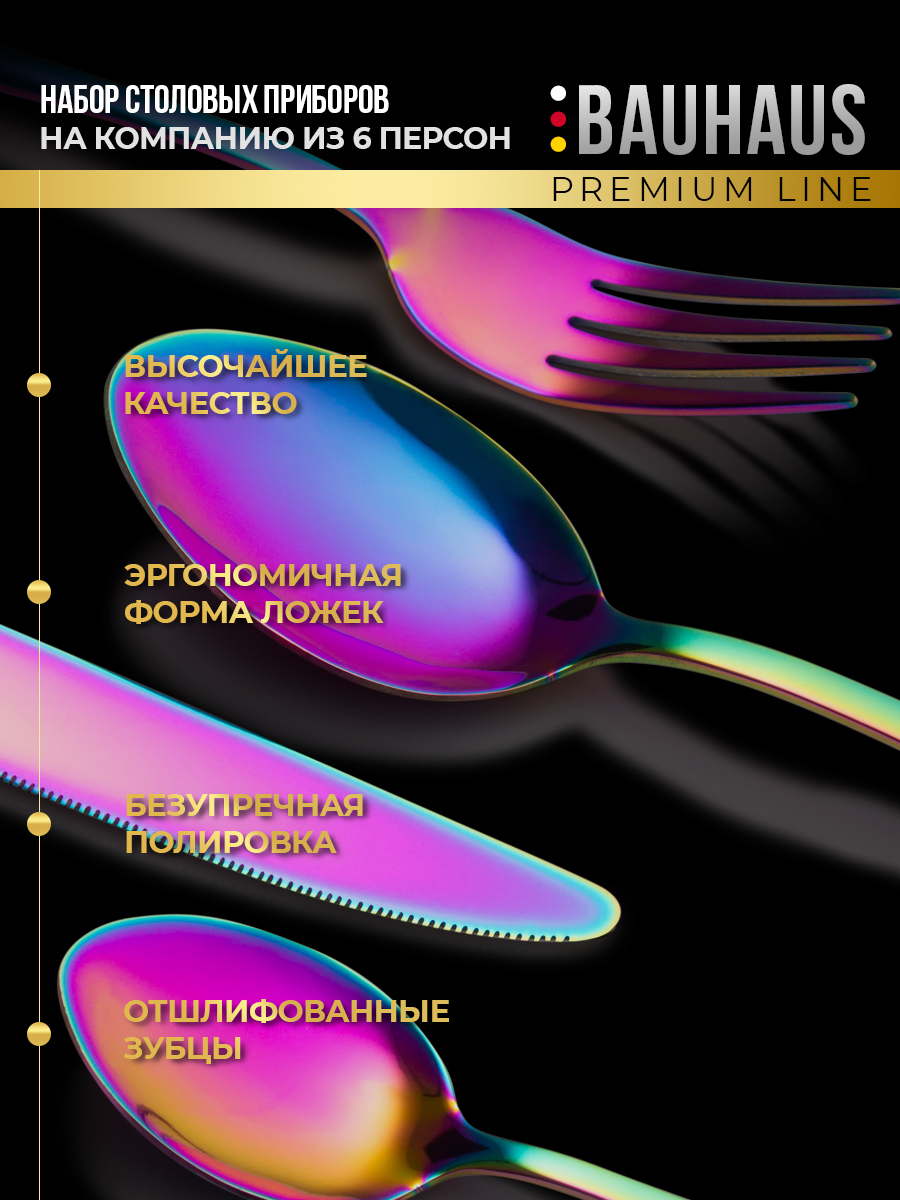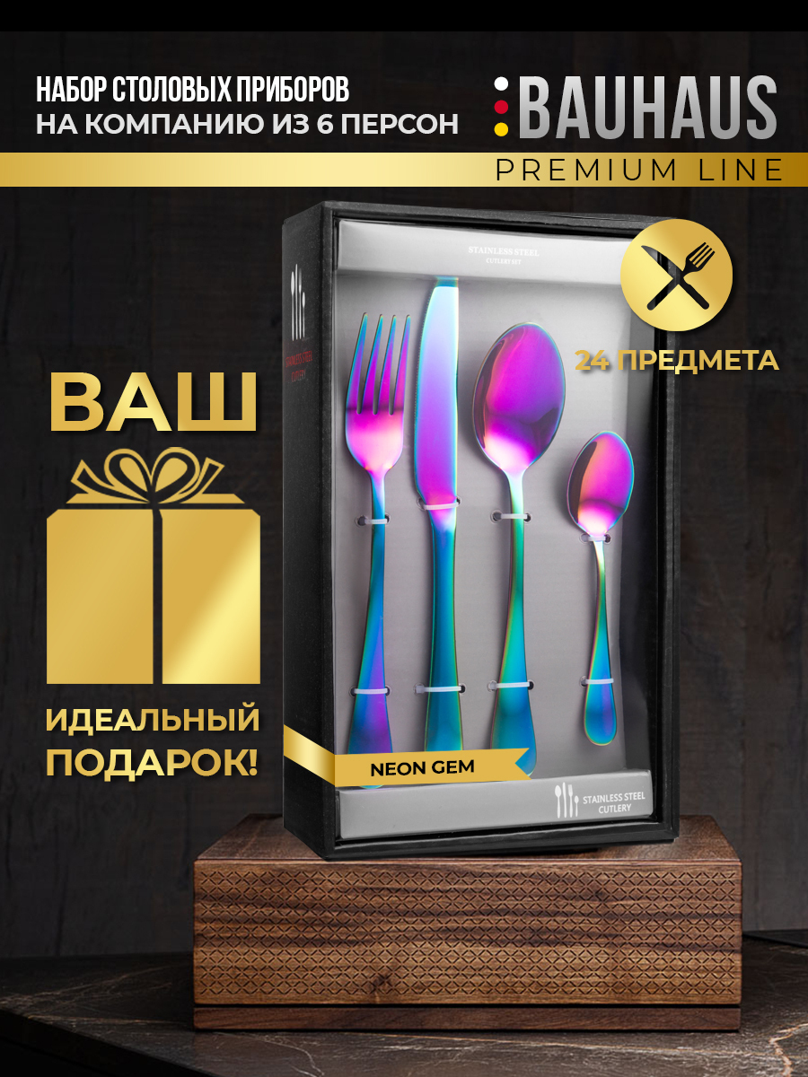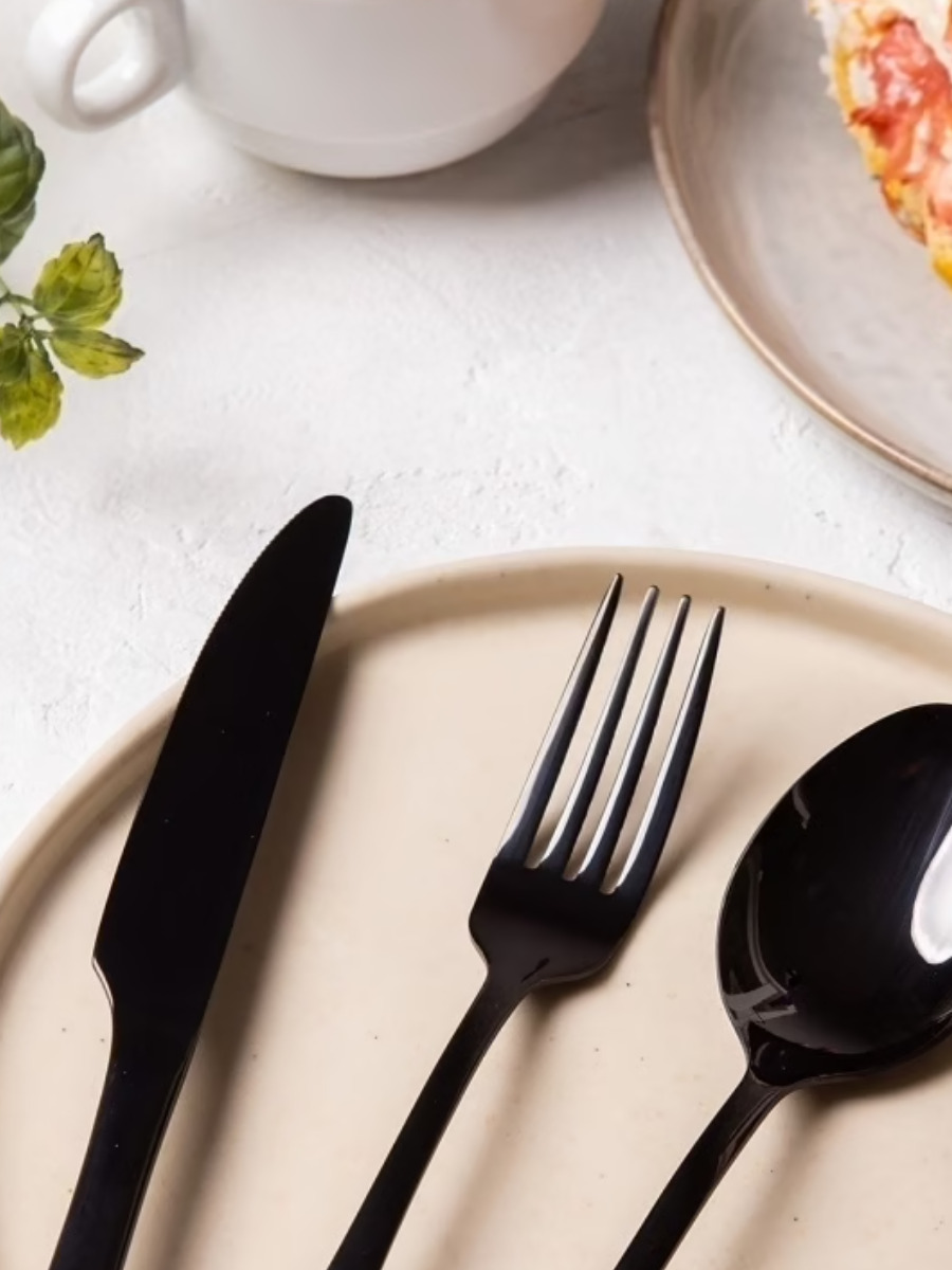Набор столовых приборов 24 предмета / Подарочный комплект на 6 персон / Премиум набор черный