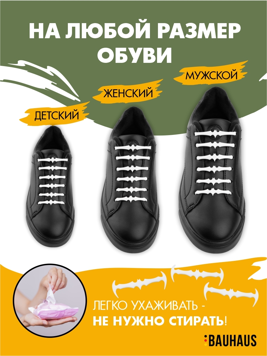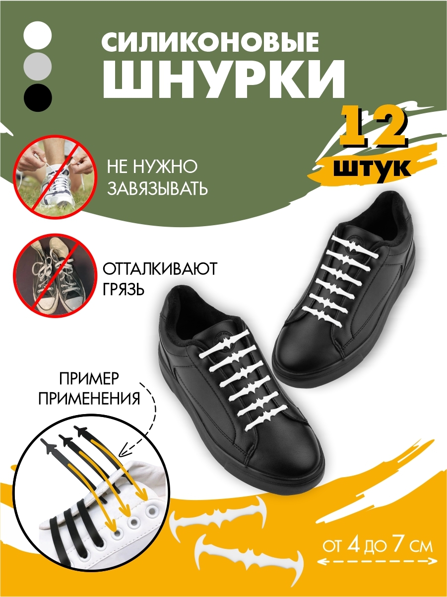 Шнурки для обуви силиконовые эластичные белые Ленивые шнурки Шнурки без завязок