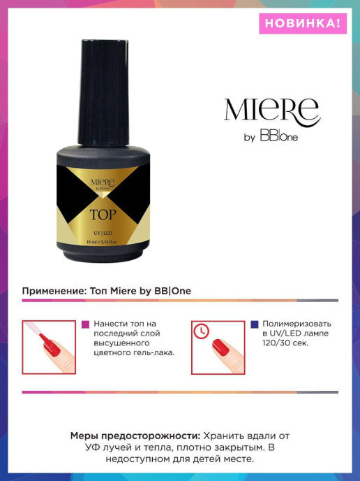 BB one / Корейский топ для гель-лака, финишное глянцевое покрытие Miere TOP, 16 мл.