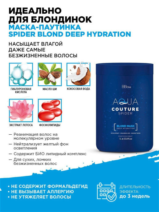 BB one Набор холодный ботокс для светлых волос AQUA COUTURE SPIDER BLOND DEEP HYDRATION BTX 2х100
