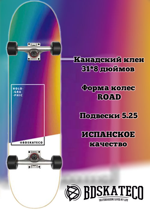 Скейтборд BD SkateCO для трюков BD Complete Holographic - Rainbow 8x31.75 80 х 20см