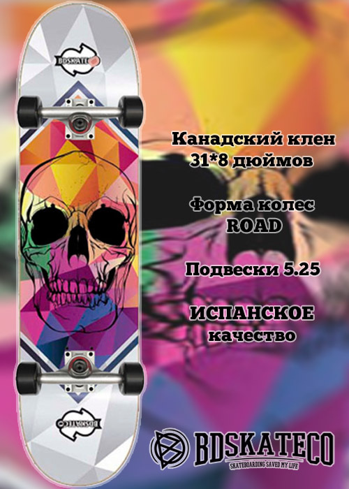 Скейтборд BD SkateCO BD Complete Skull white 8x31.75 80 х 20см