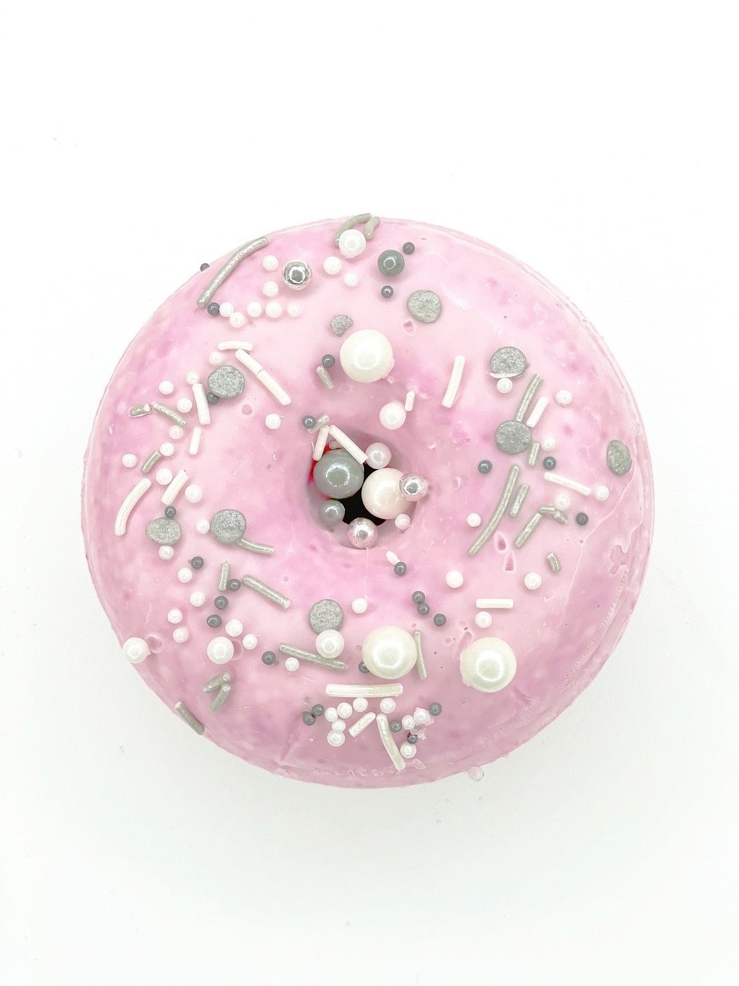 Бомбочка для ванной "Земляничный БУМ", бурлящий шар - гейзер в виде пончика, 180 г
