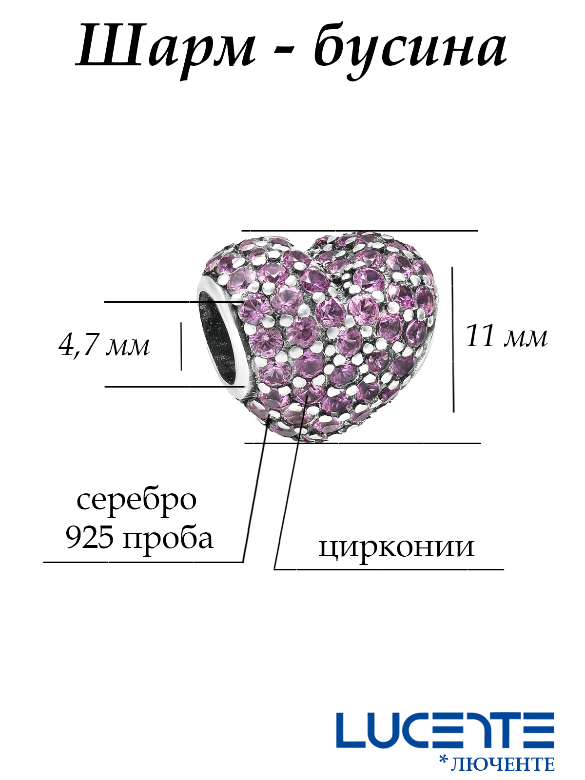 Beauty Charm Шарм "Сердце" серебряный на браслет с камнями серебро 925 пробы