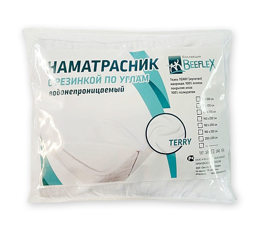 Наматрасник-чехол Beeflex водонепроницаемый Аквастоп с бортом 170x200х20см