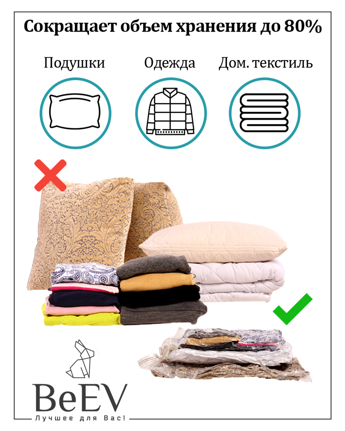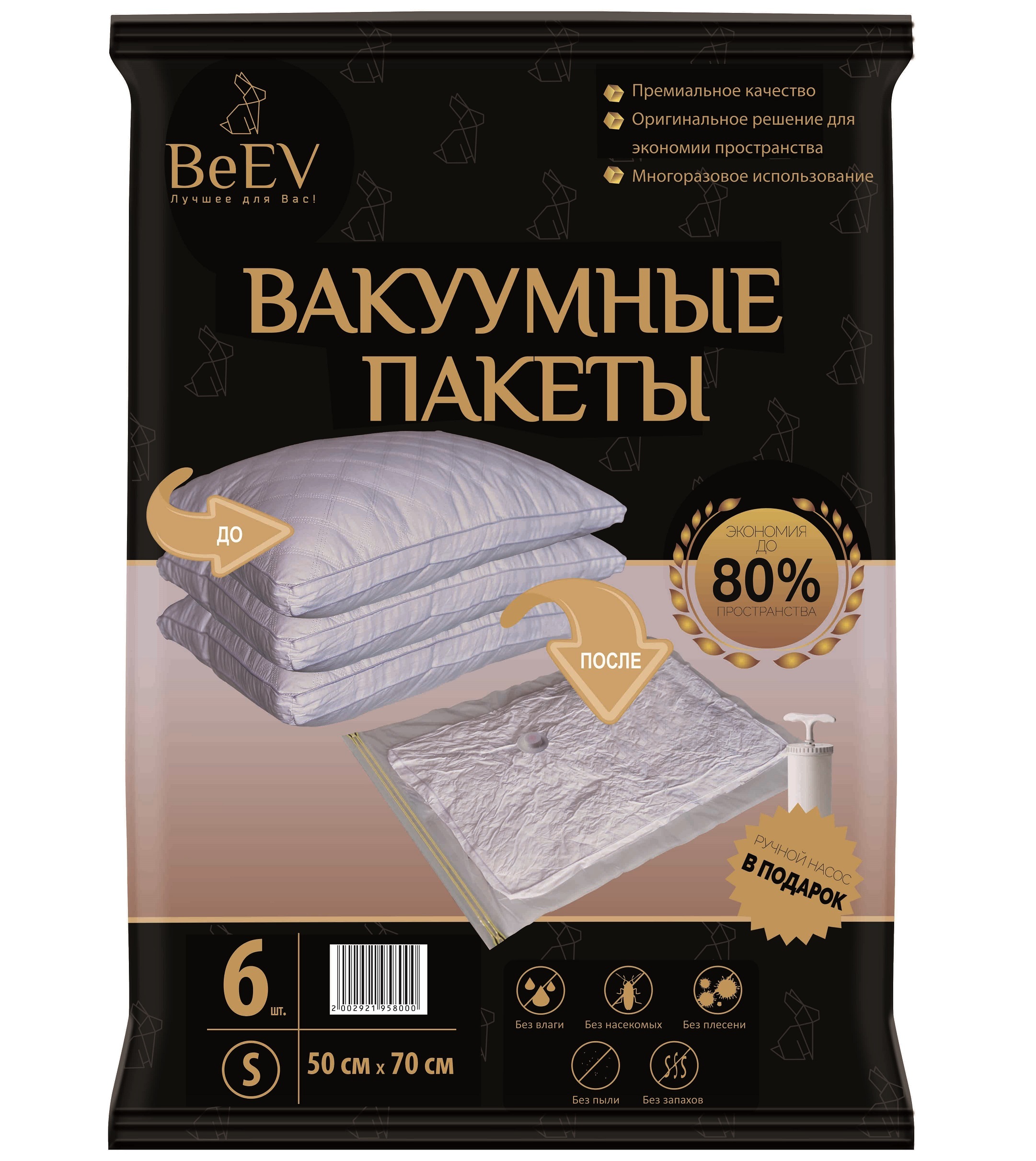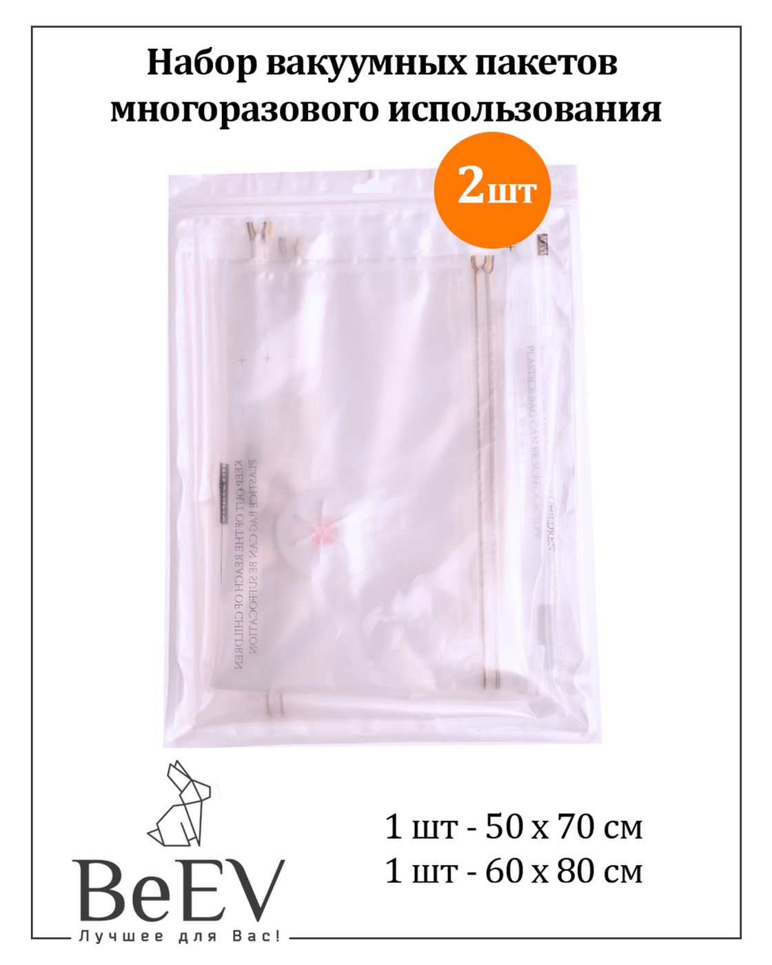 Вакуумные пакеты для вещей. Набор из 2 пакетов с клапаном. Размер S (50х70) 1 шт., M (60х80) 1 шт.