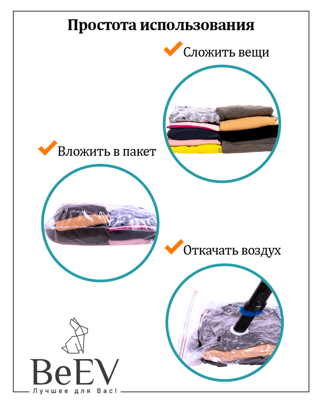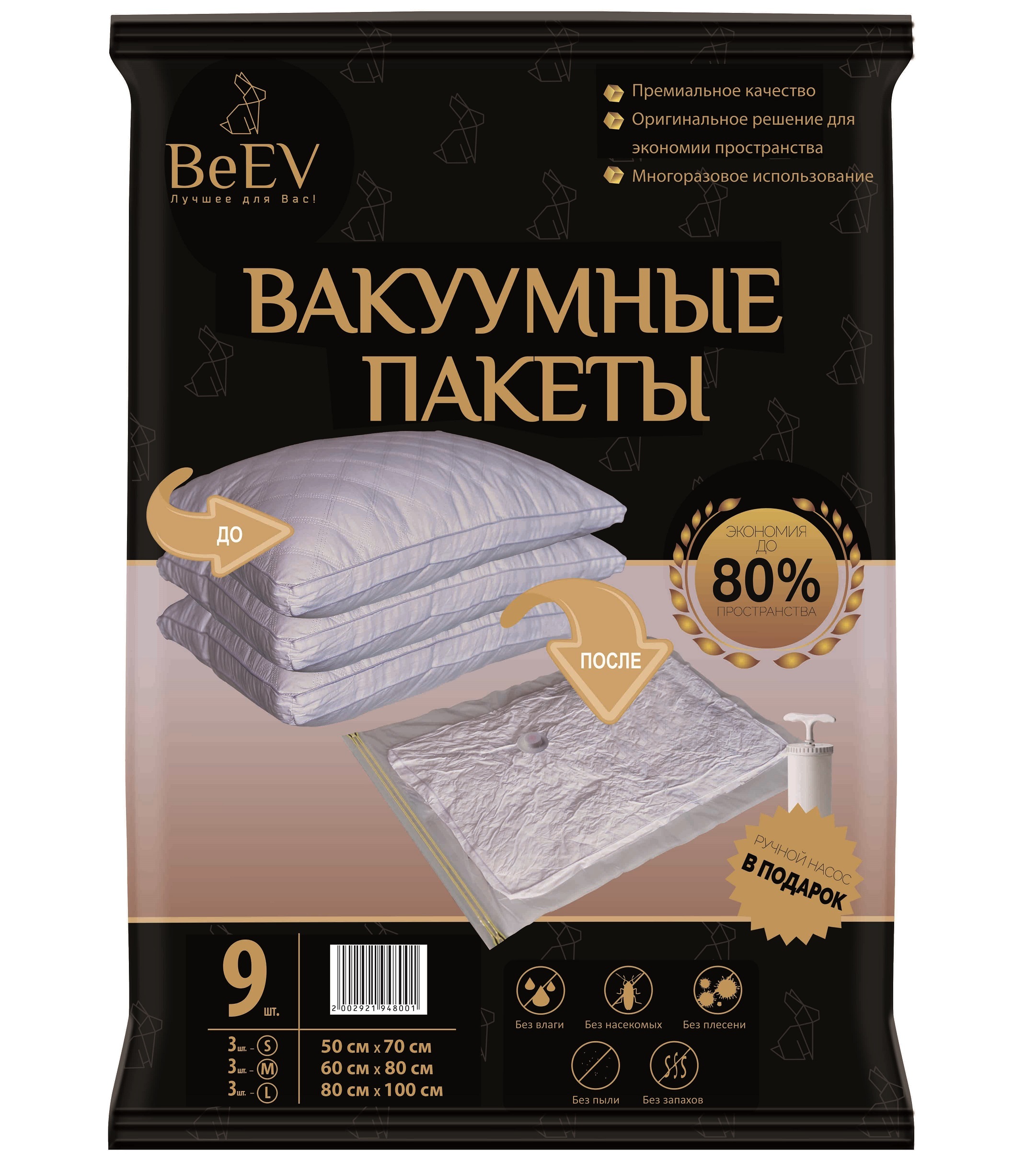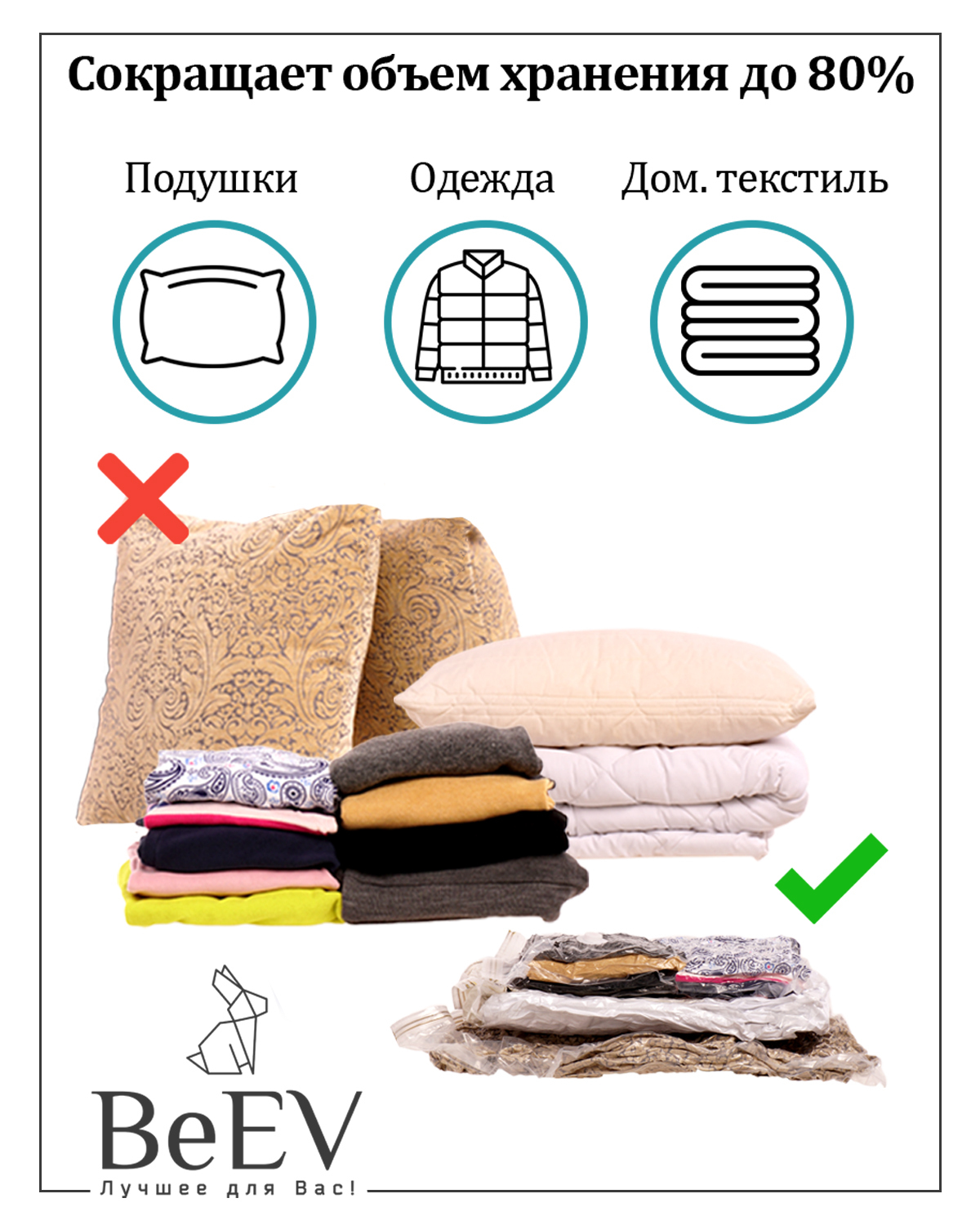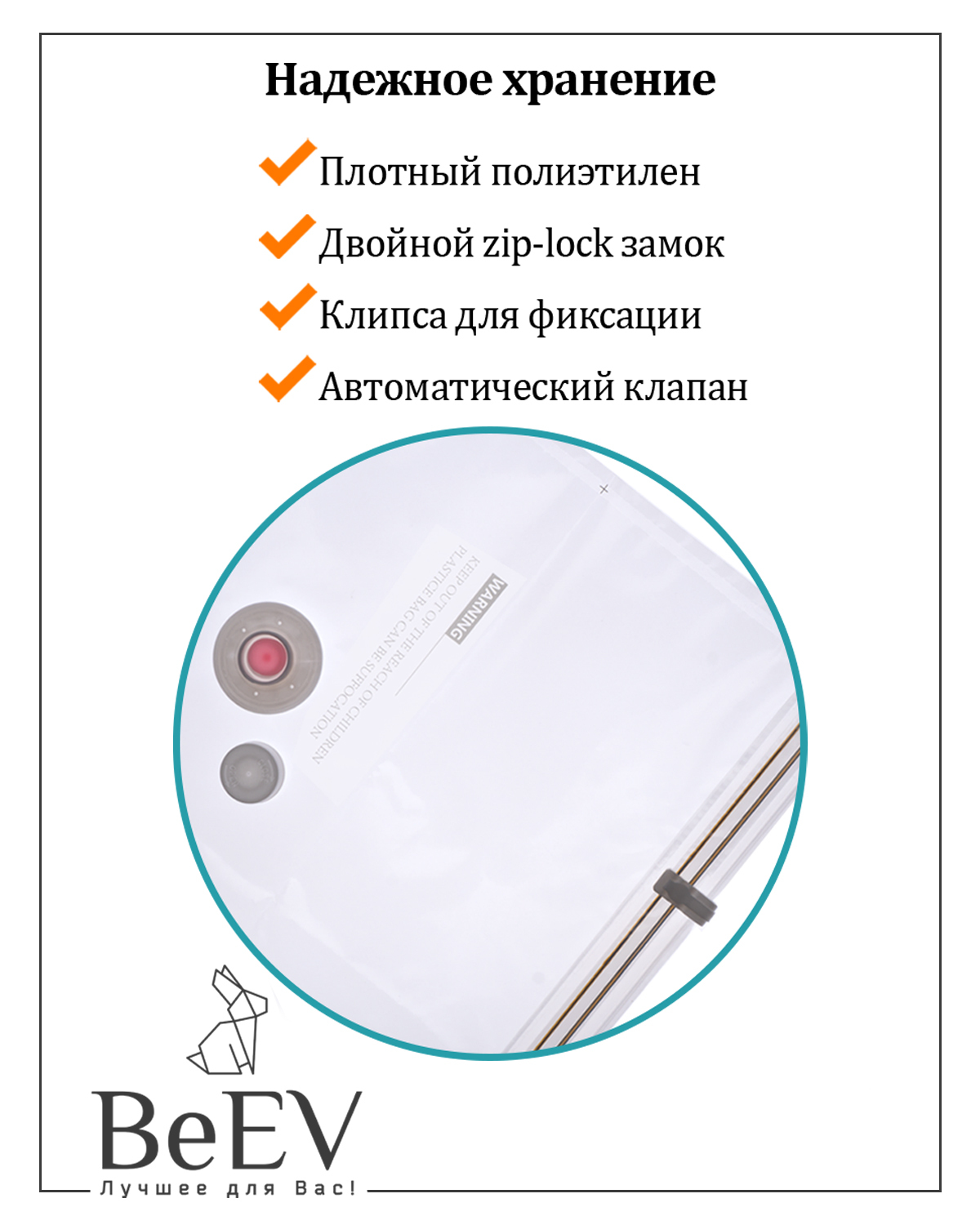 Вакуумные пакеты для вещей. Набор из 2 пакетов с клапаном. Размер S (50х70) 1 шт., M (60х80) 1 шт.