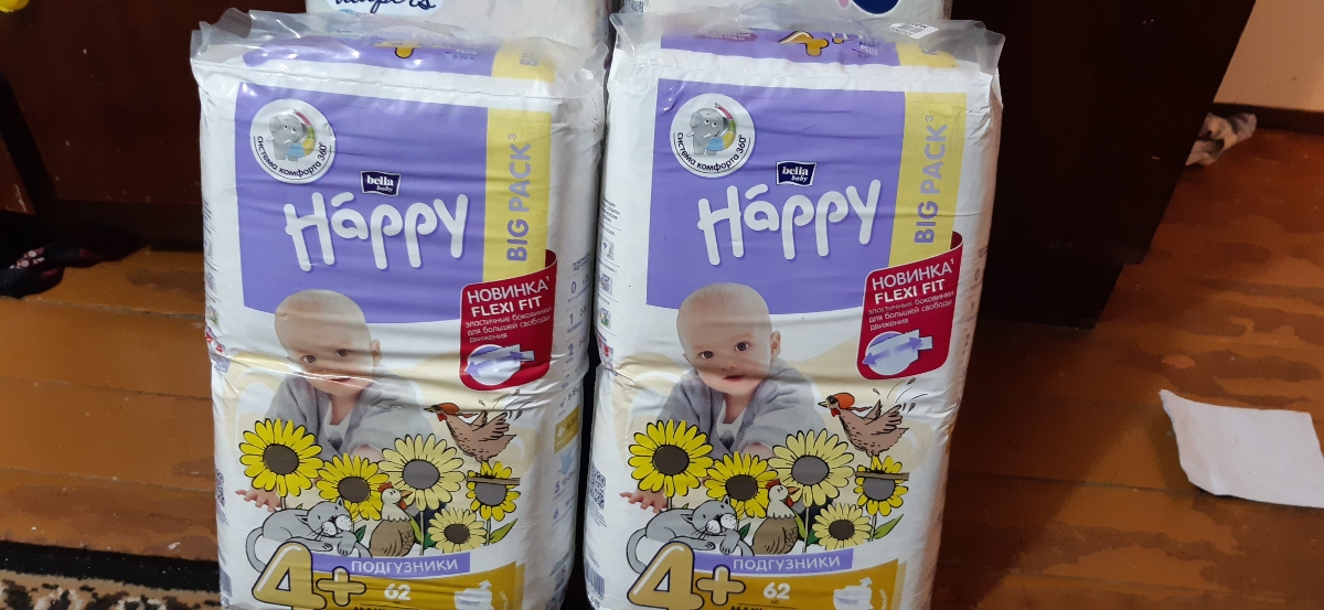 Подгузники для детей bella baby Happy Maxi Plus по 62 шт. вес 9-20 кг