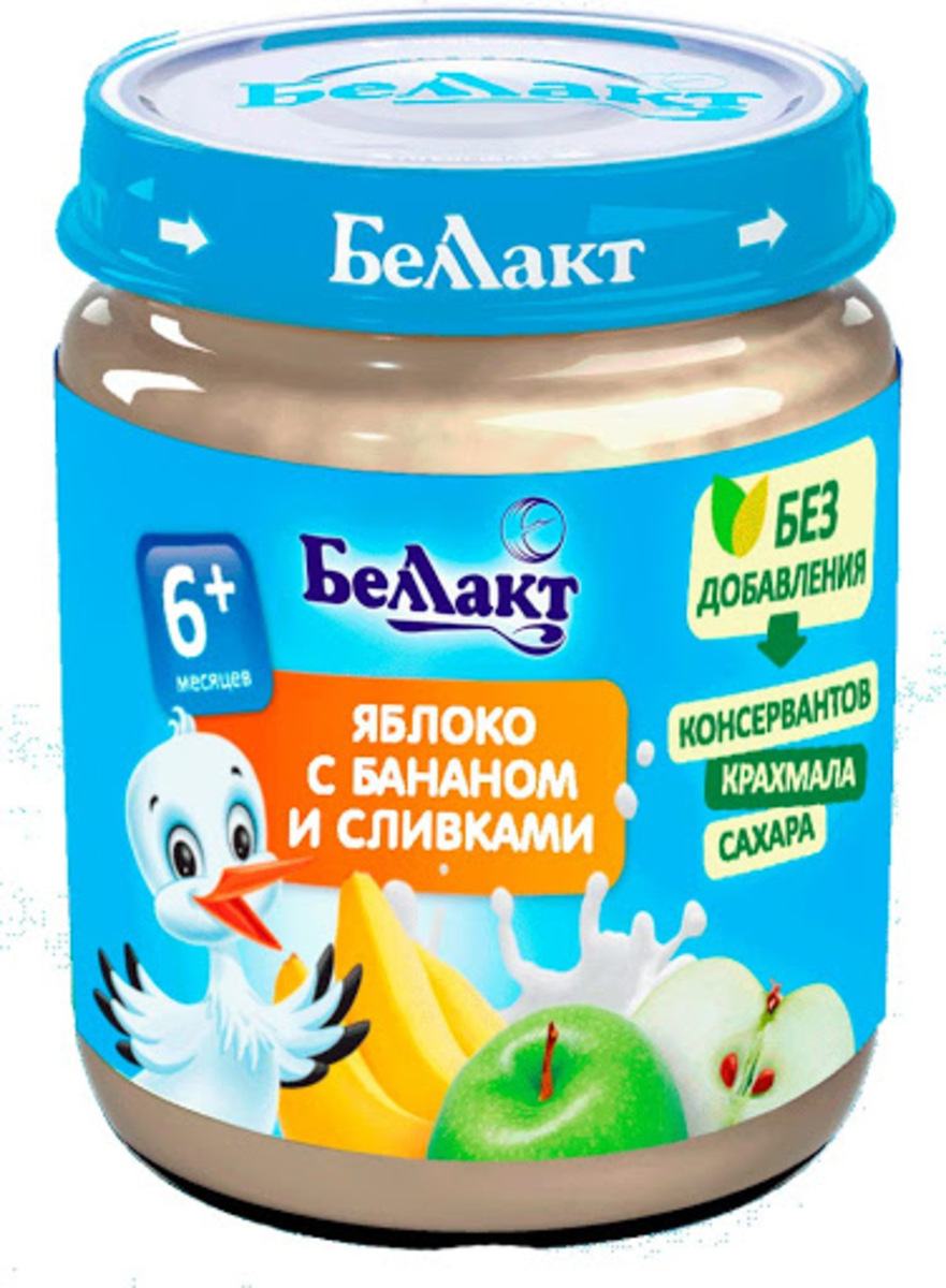 БЕЛЛАКТ Пюре яблочно-банановое со сливками 12 шт