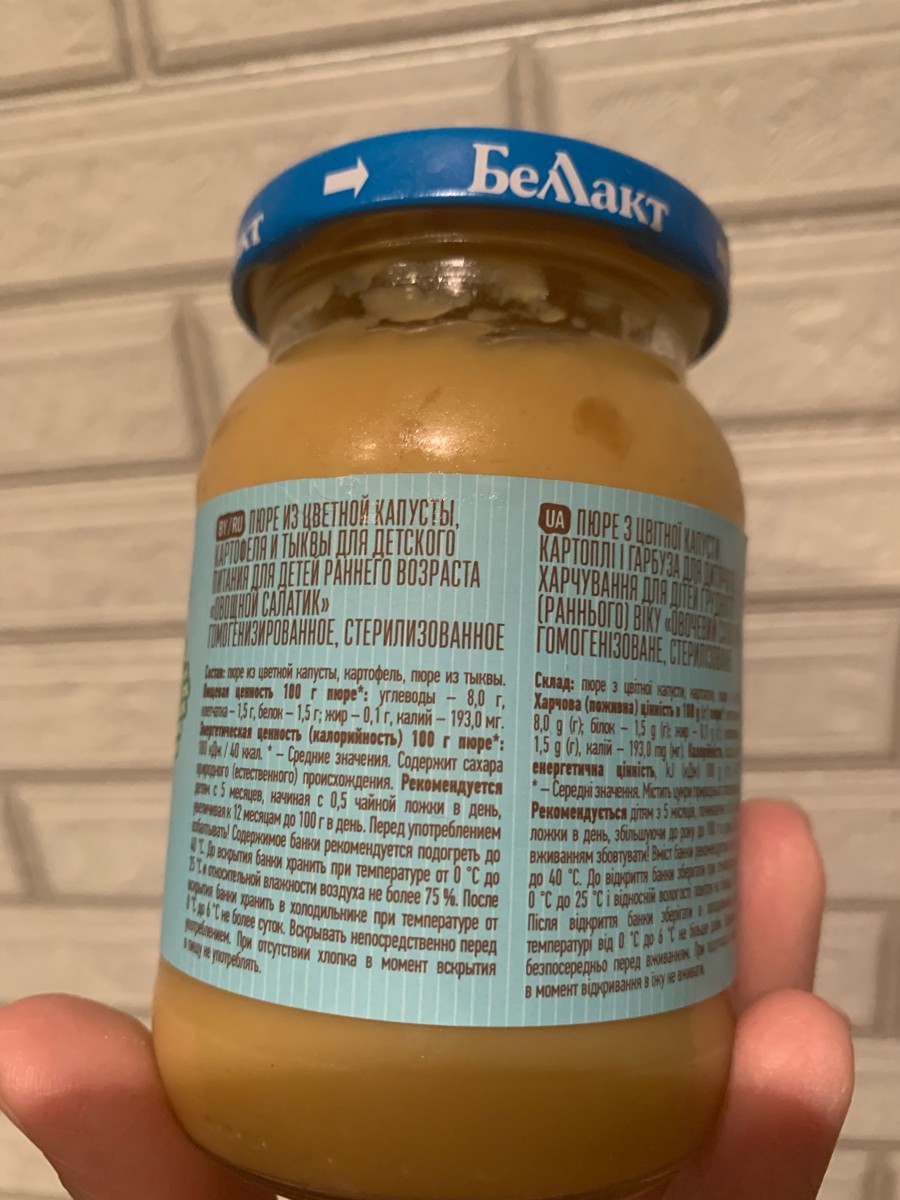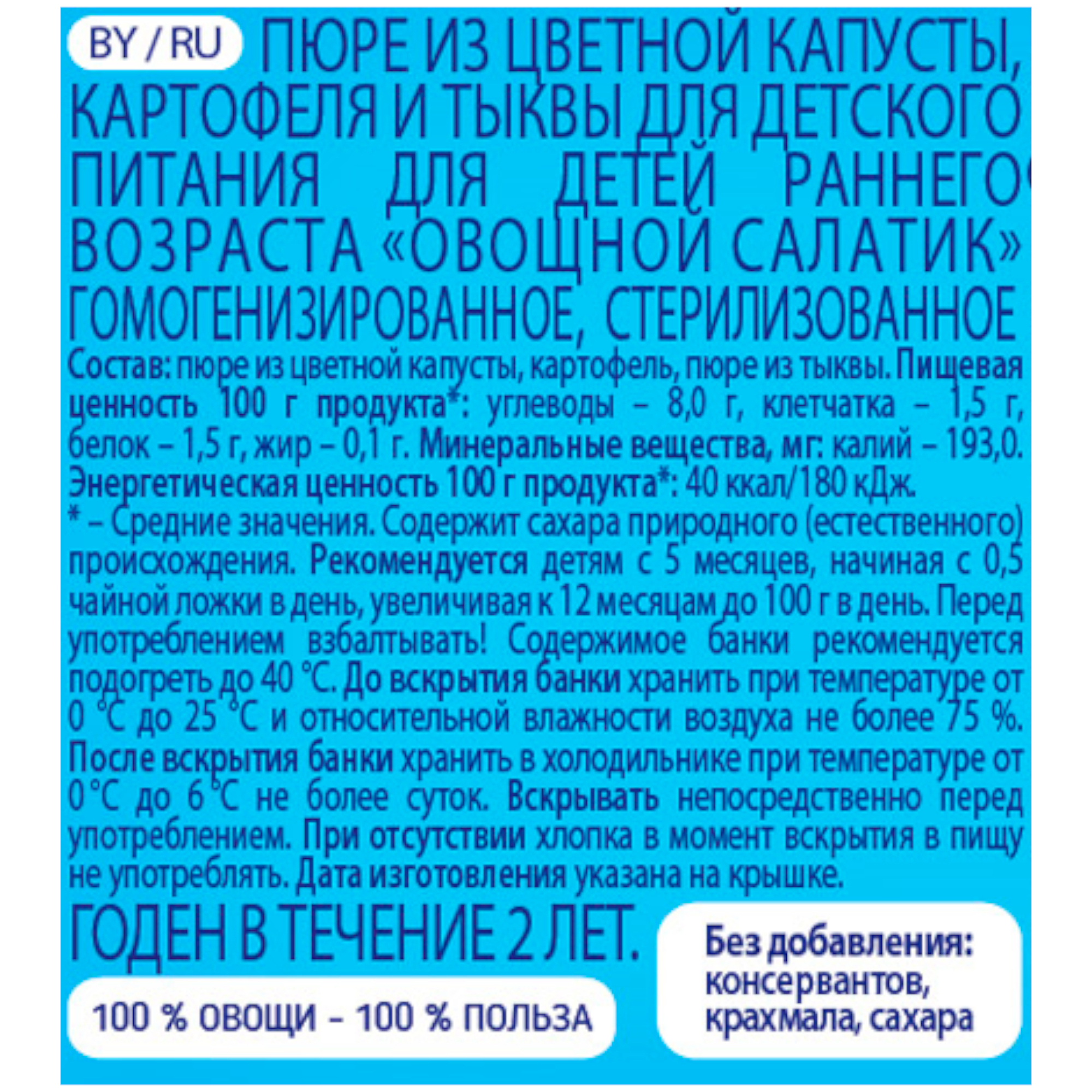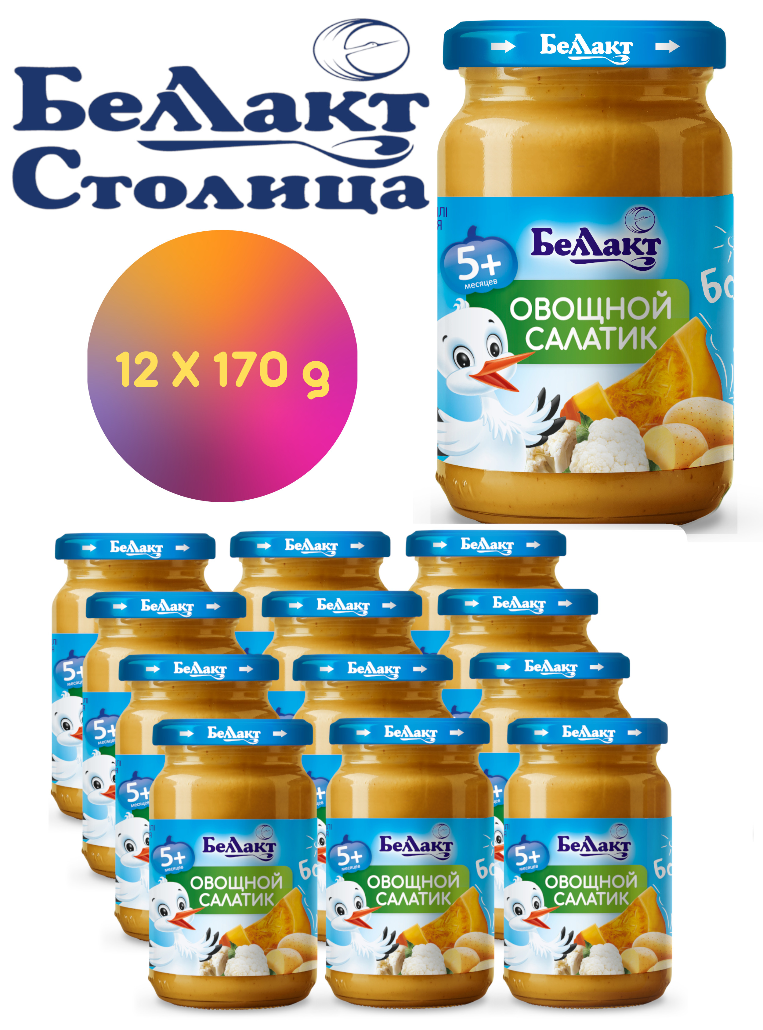 Пюре Беллакт Овощной салатик из цветной капусты, картофеля и тыквы, 170г, с 5 месяцев, 12 шт