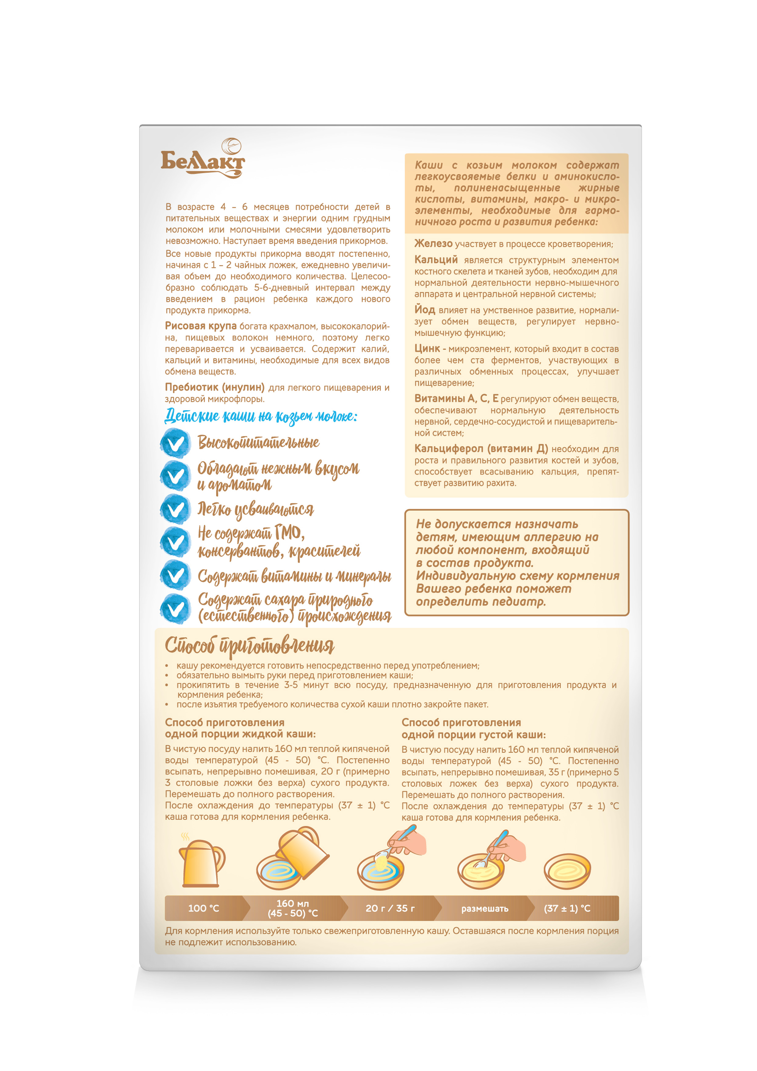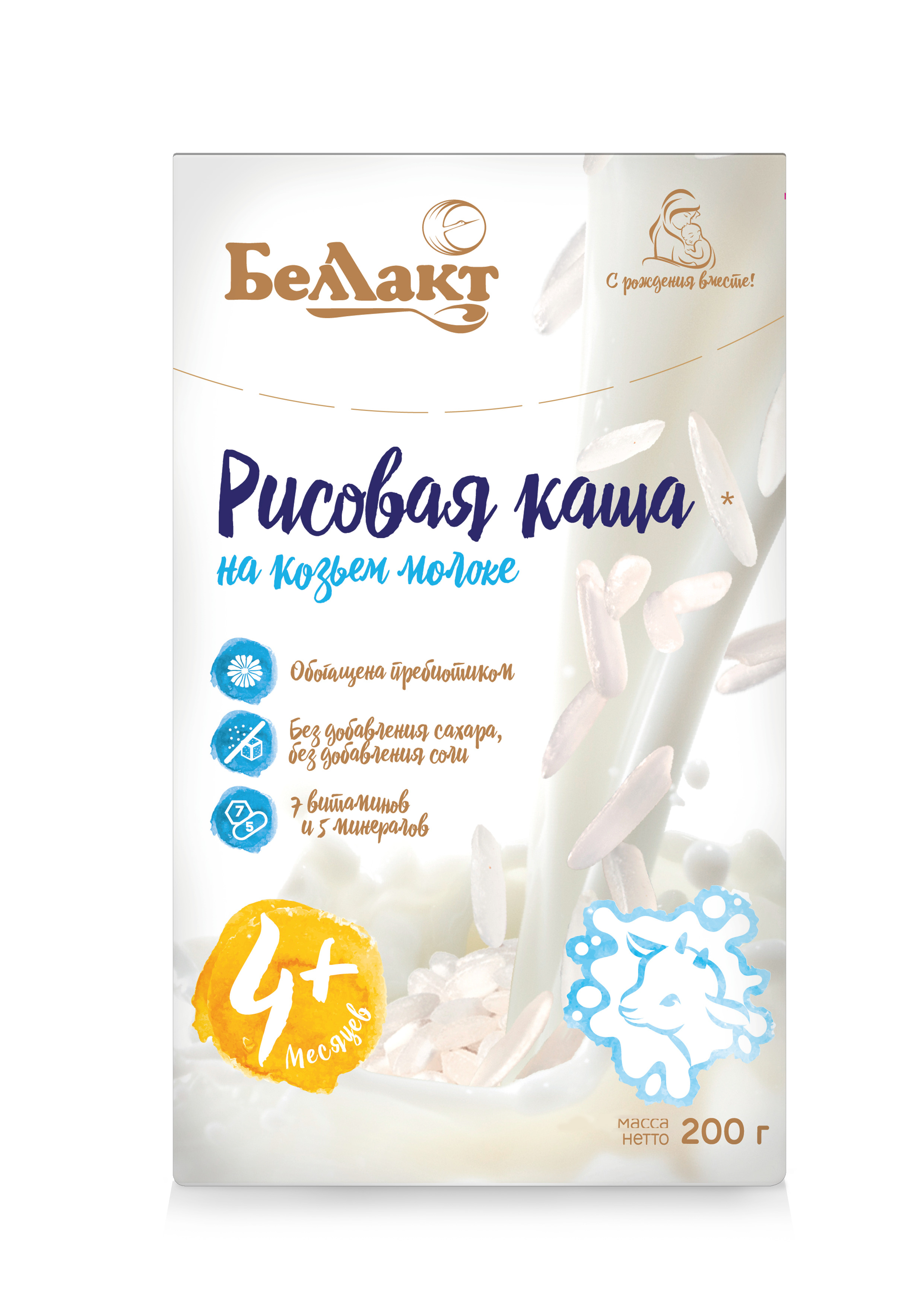 БЕЛЛАКТ Каша сухая на козьем молоке рисовая с вит., мин. и инулином 200гр.