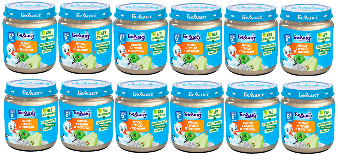 БЕЛЛАКТ Пюре из яблок и груш с творогом 12 шт