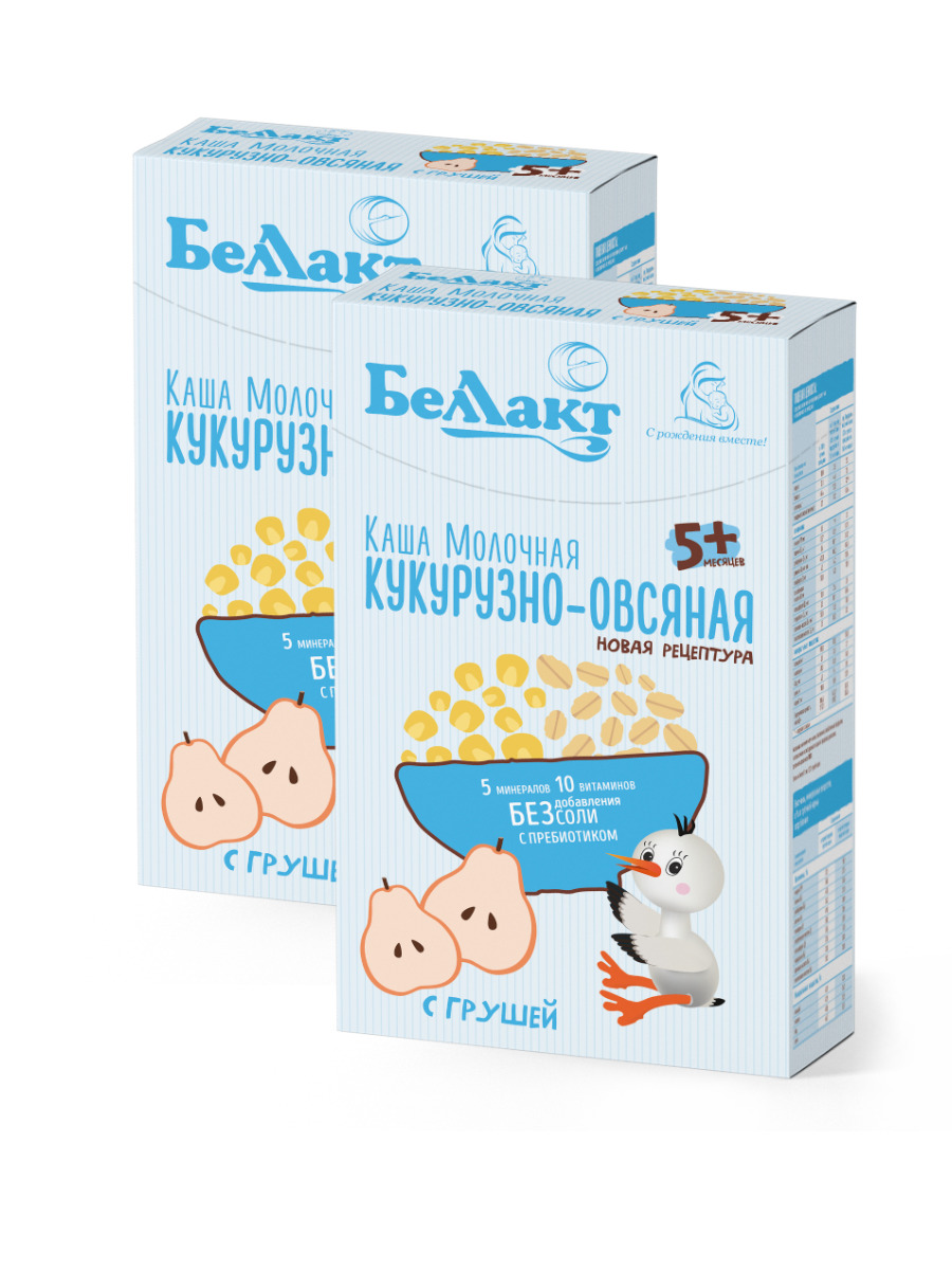 Беллакт каша сухая на зерно-молочной основе кукурузно-овсяная с грушей, 2 шт по 250