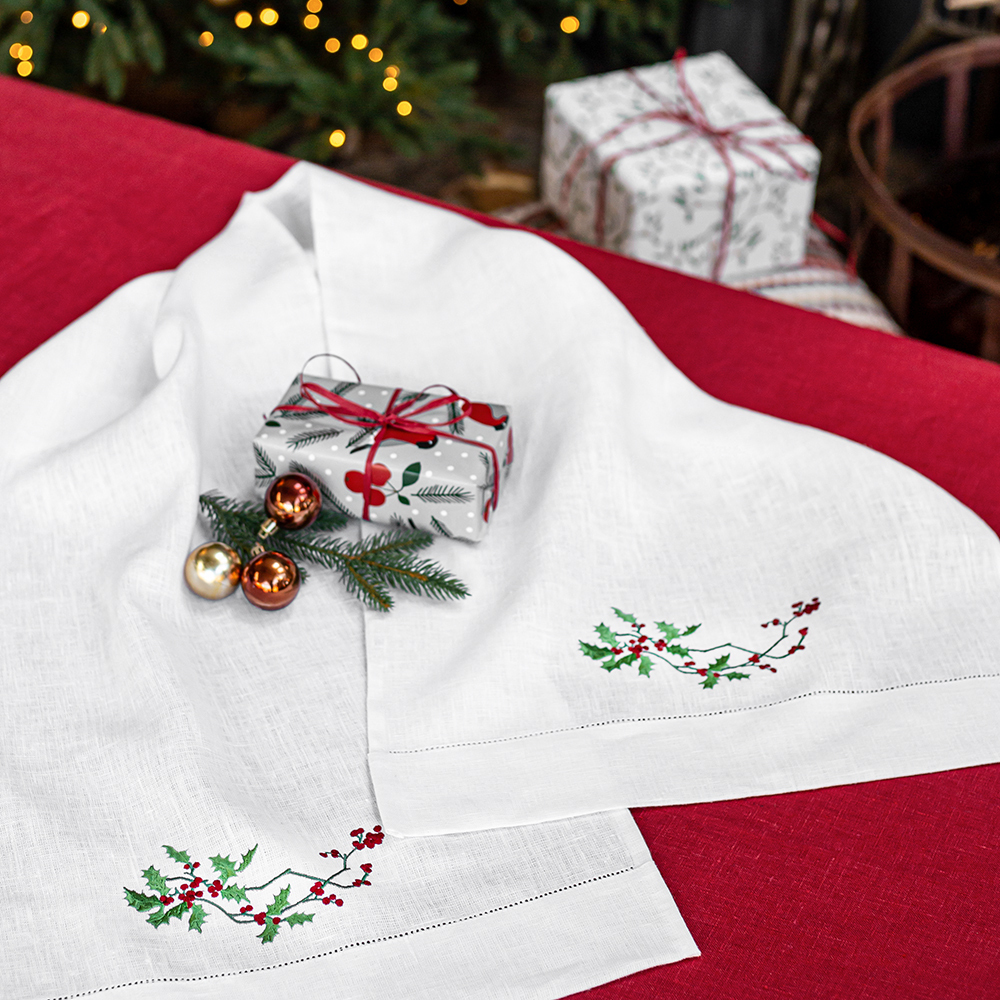 Набор льняных кухонных полотенец с вышивкой для рук и декора 100% лен