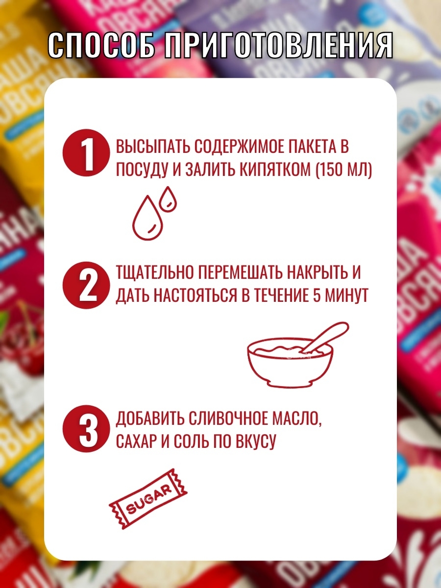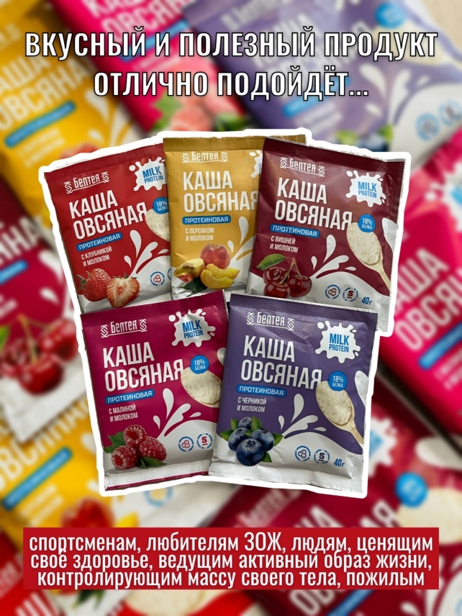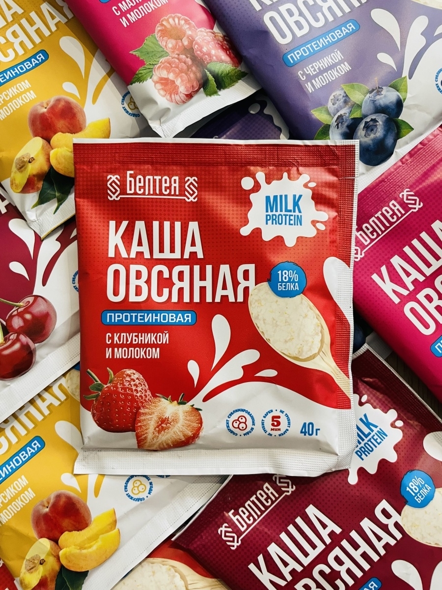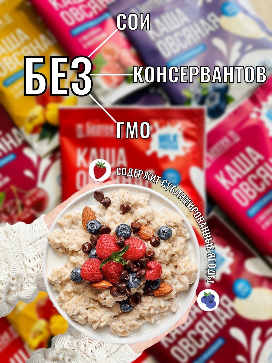 Каша овсяная протеиновая с клубникой и молоком /5 пакетиков