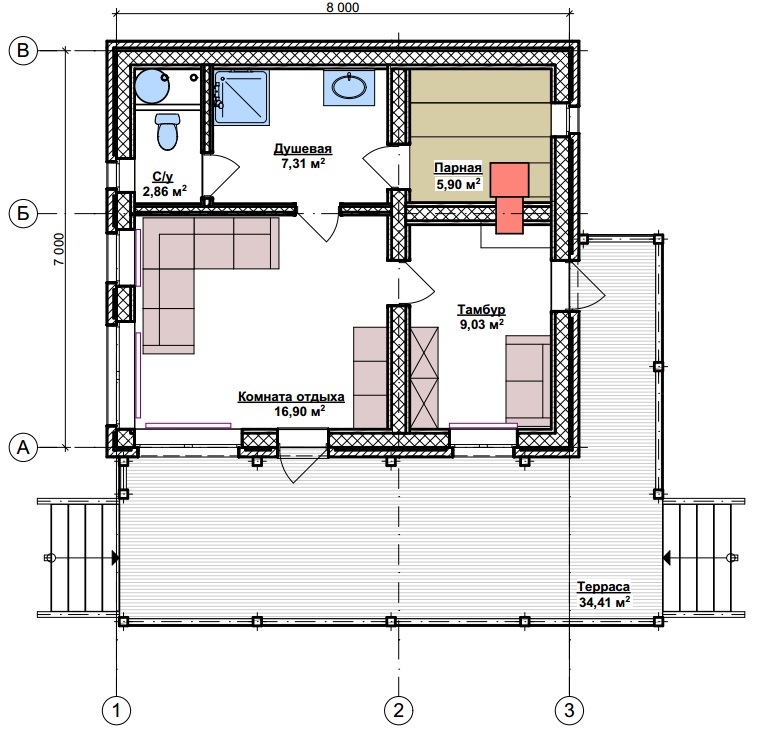 Готовый проект бани И109