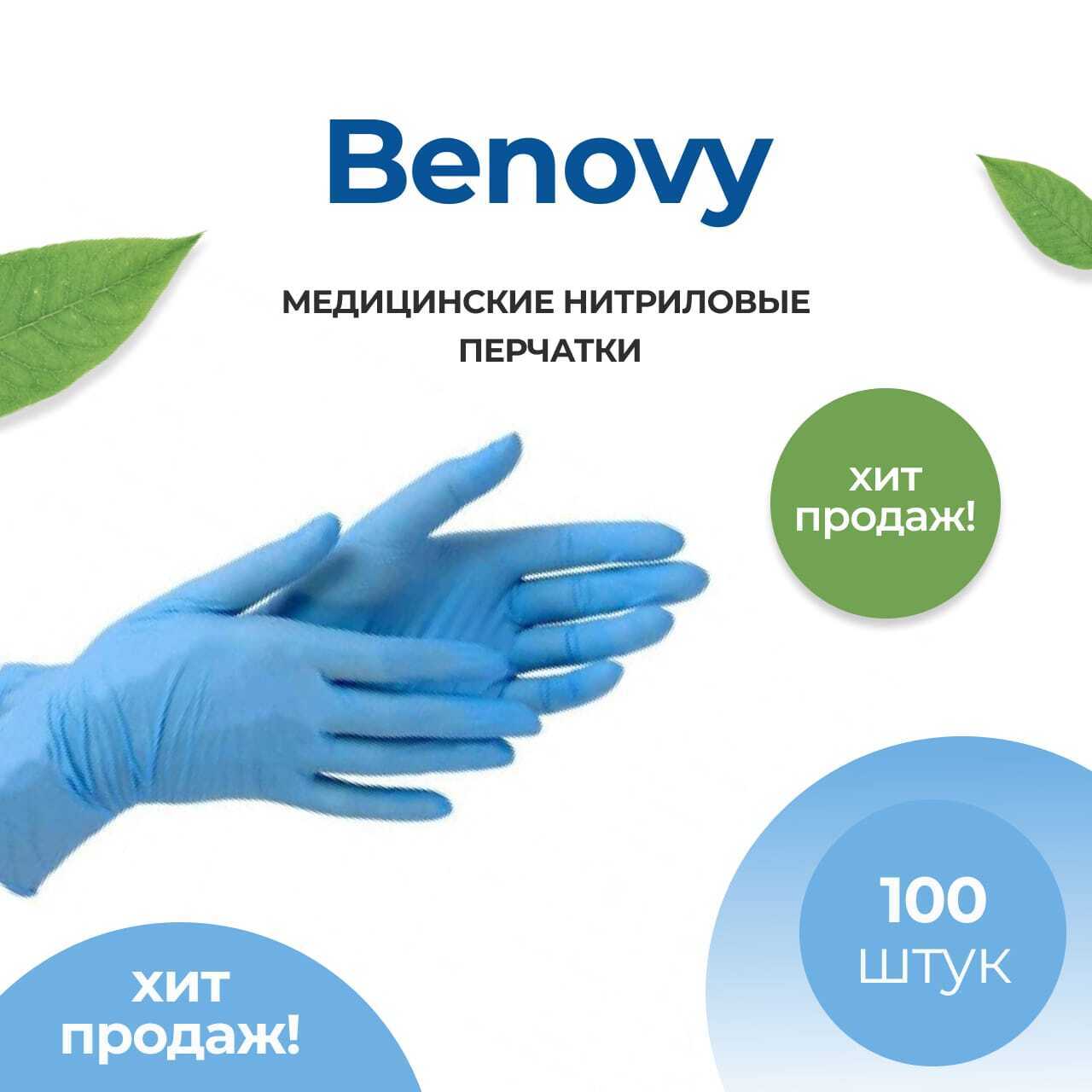 Benovy Перчатки нестерильные нитриловые текстур. 100 пар, голубые м