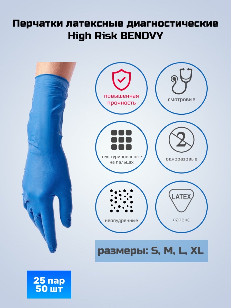 Перчатки смотровые (диагностические), размер XS, (50 пар), Benovy