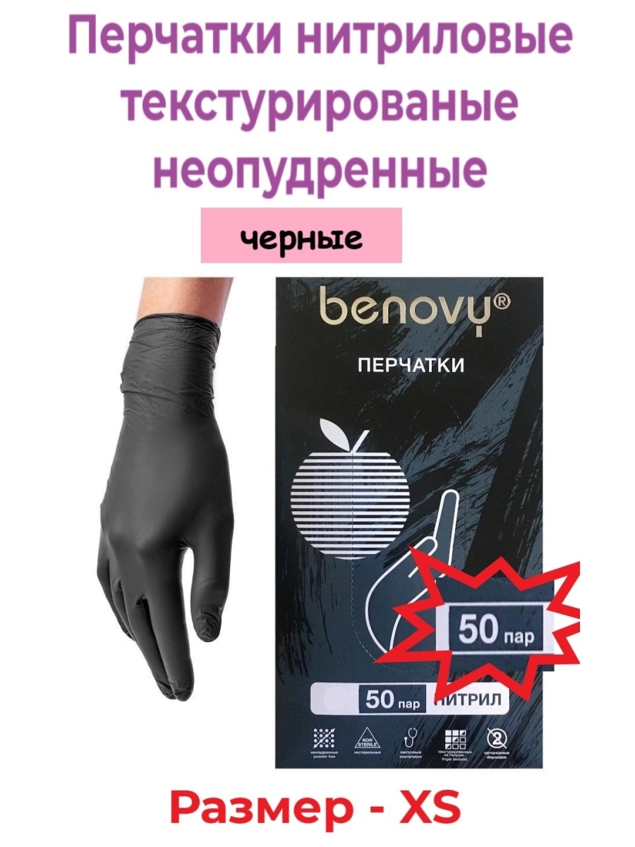 Benovy перчатки нитриловые, медицинские, одноразовые, черного цвета, размер M, 50 пар, 100 штук
