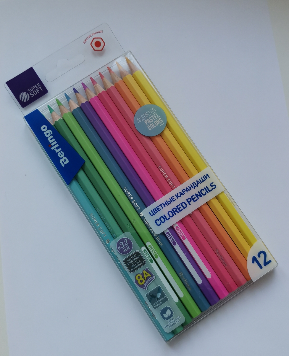 Карандаши цветные пастельные Berlingo "SuperSoft. Pastel", 12цв, заточен., европодвес