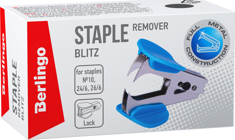 Антистеплер Berlingo "Blitz", с фиксатором, голубой