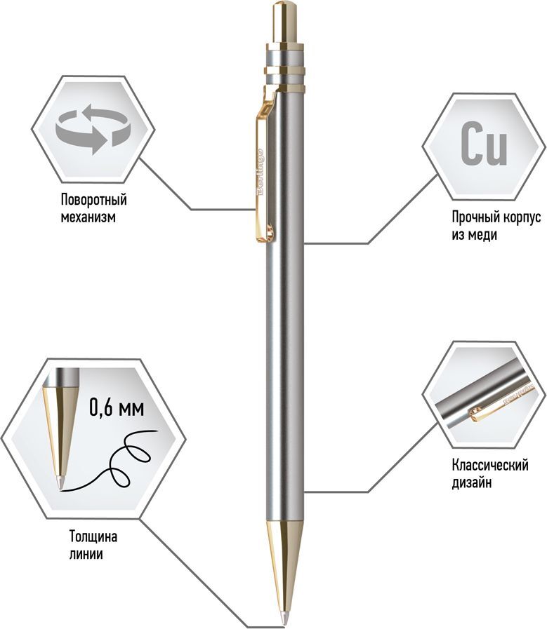 Ручка шариковая Berlingo Silver Premium синяя, 0,7 мм, корпус хром/золото