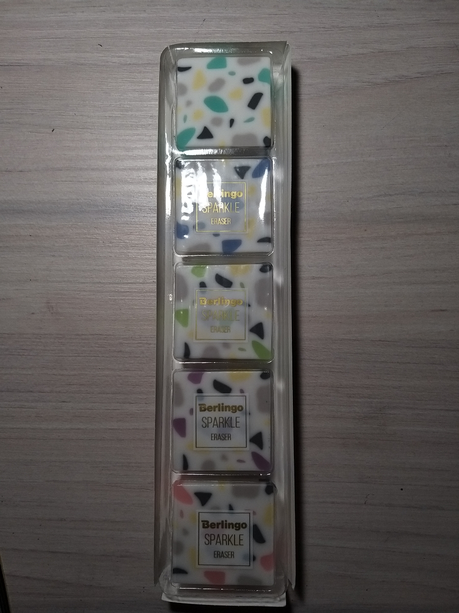 Ластик Berlingo Sparkle, прямоугольный, BLc_00500_5, 34 х 34 х 12мм, 5 шт