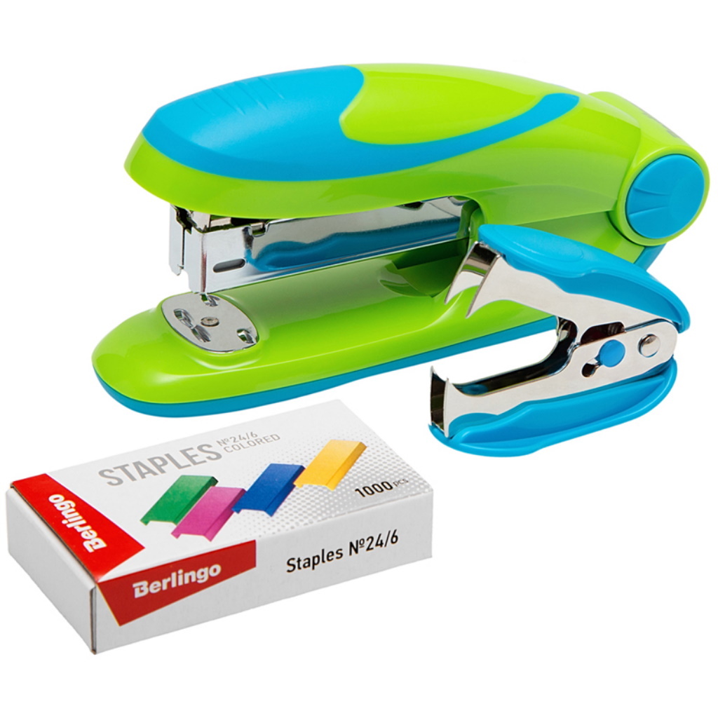 Набор Berlingo "Fuze": степлер №24/6,26/6 до 25л., зеленый; антистеплер; скобы №24/6 (H3209c)