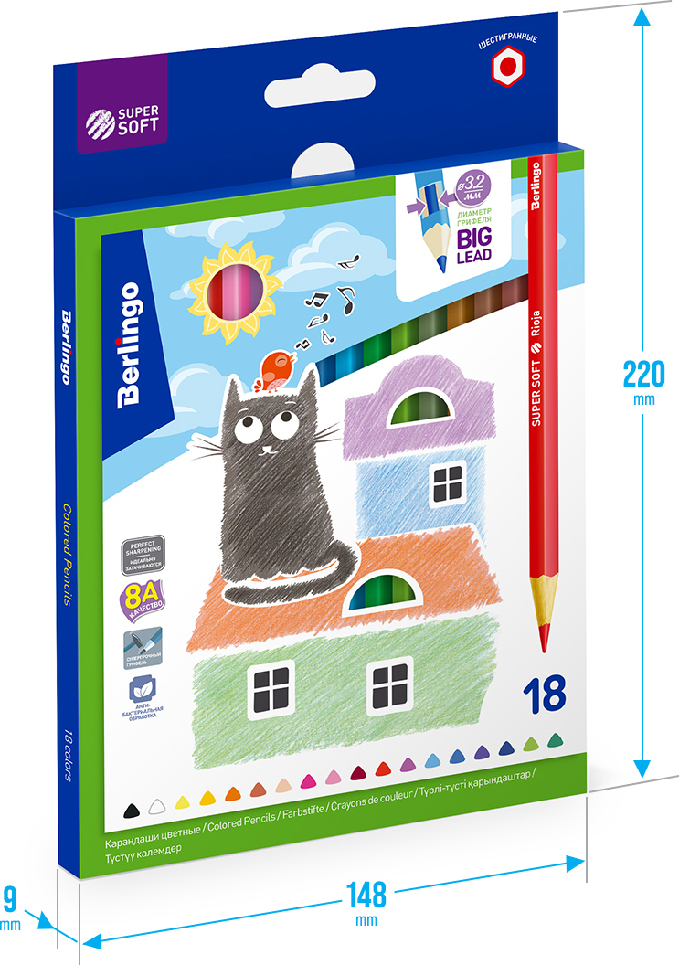 Карандаши Berlingo SuperSoft Жил-был кот, цветные, заточенные, трегранные, SS00518, 18 цветов