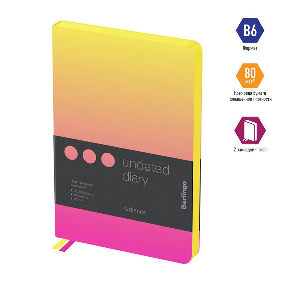 Ежедневник недатированный Berlingo Radiance экокожа, желтый/розовый градиент, B6, 136 листов