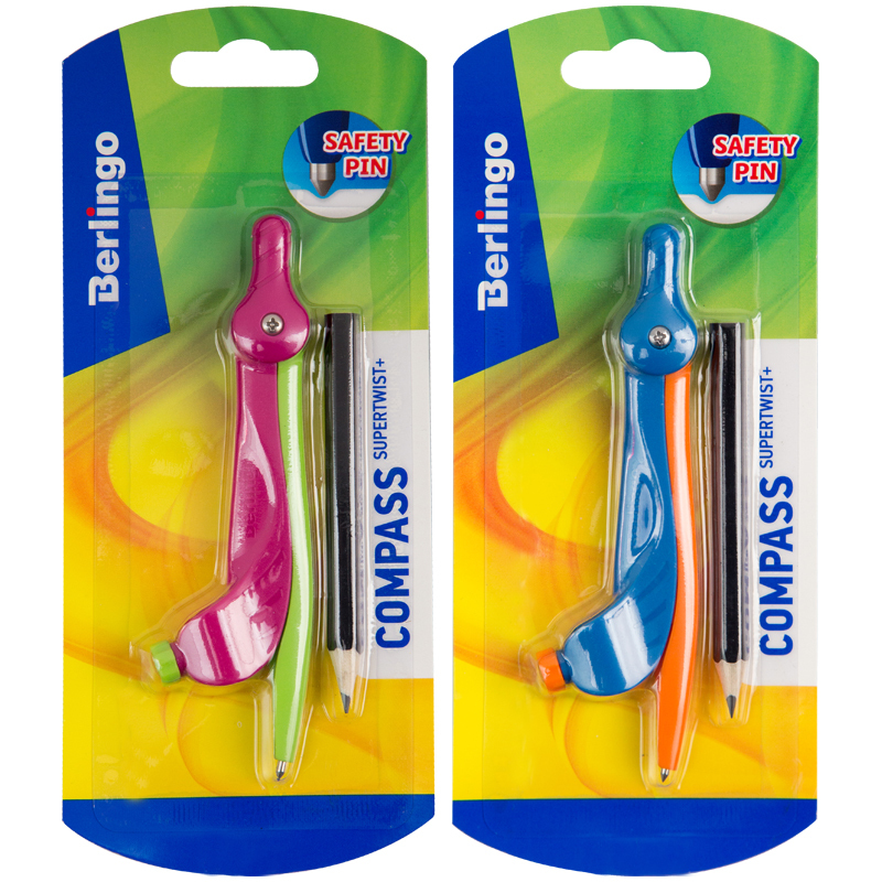 Циркуль Berlingo "Supertwist" пластиковый, 120мм, безопасная игла, с держ., с карандашом, блистер