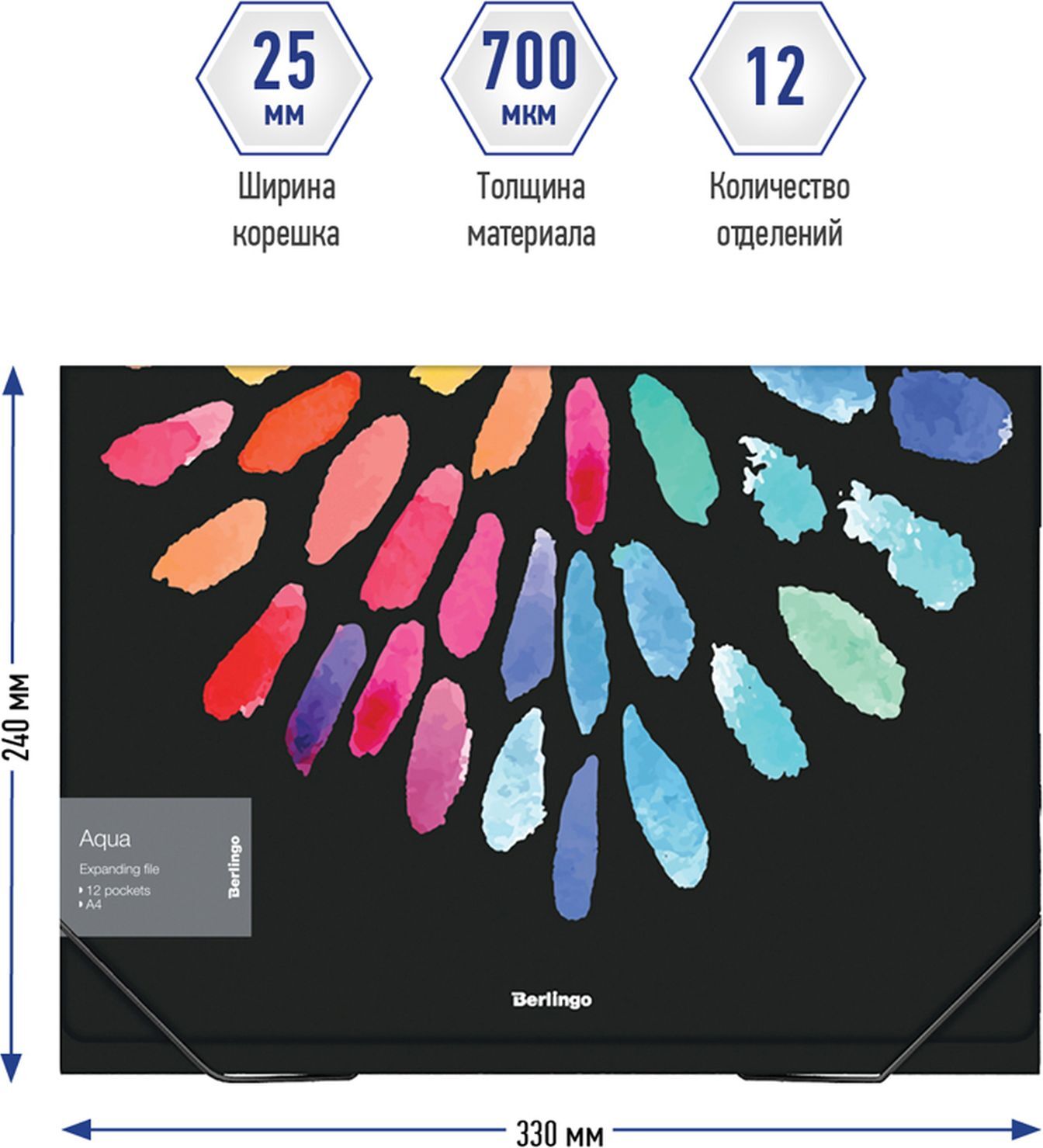 Папка 12 отделений Berlingo серия Aqua, А4, 700 мкм, на резинке, рисунок