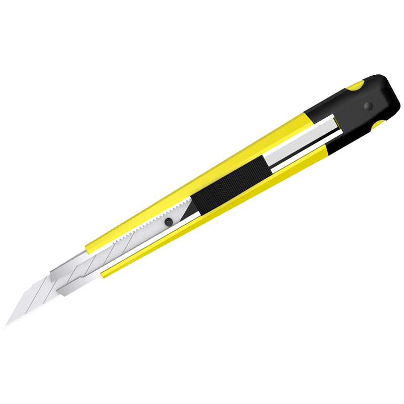 Нож канцелярский 9мм Berlingo "Hyper", auto-lock, металл. направл., желтый, европодвес
