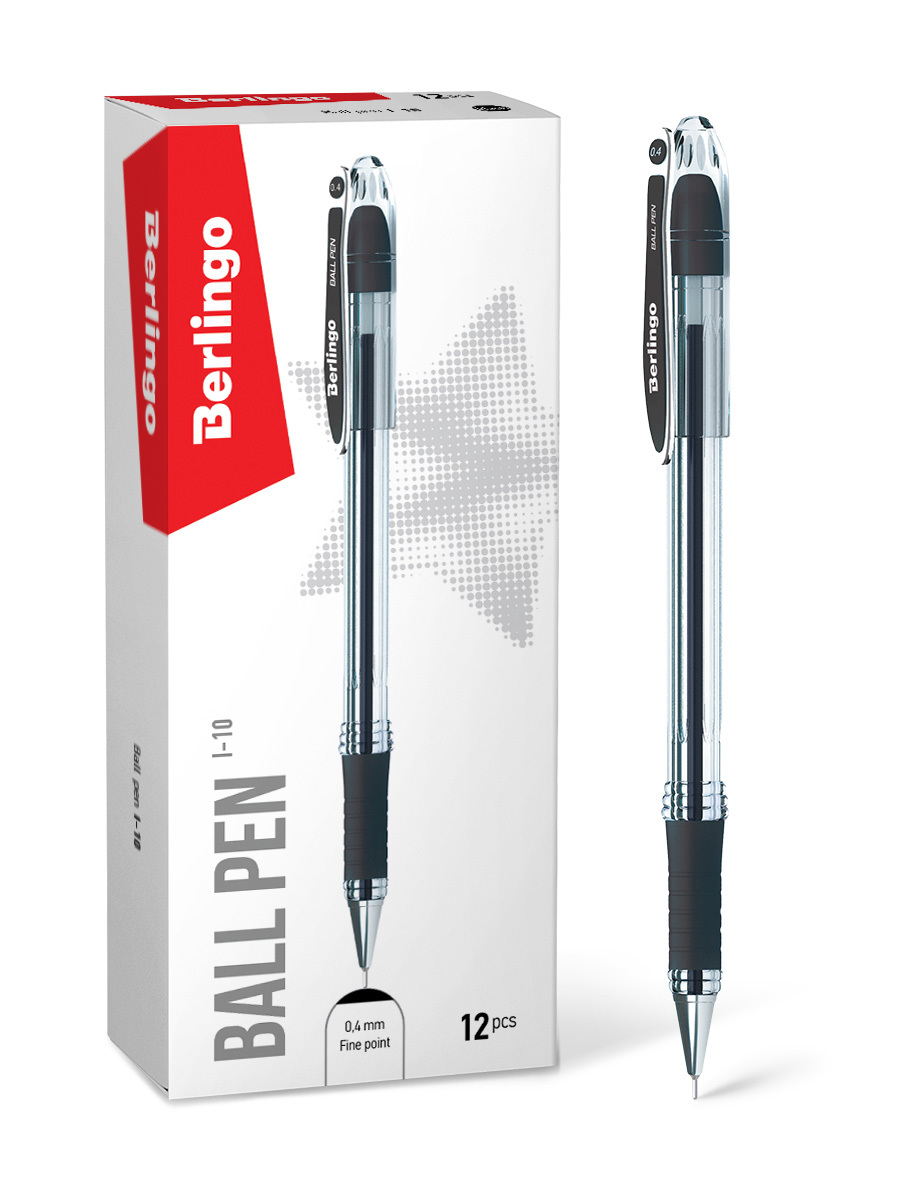 Ручка шариковая Berlingo "I-10" чёрная, 0,4 мм, 12 штук