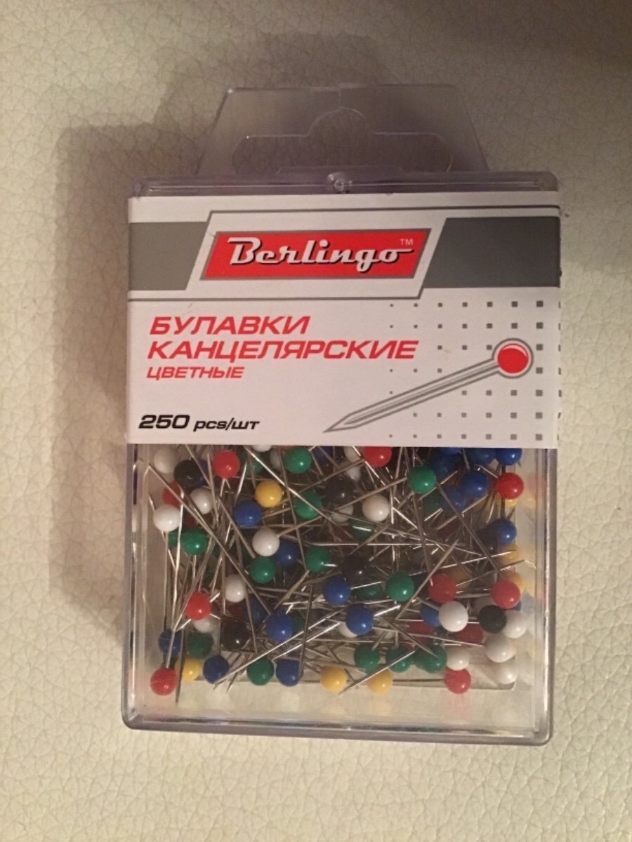 Булавки канцелярские "Berlingo", цветные, 250 шт
