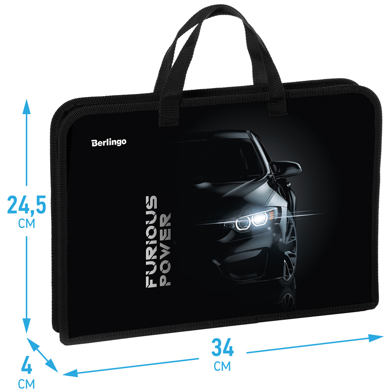 Папка с ручками 1 отделение А4 Berlingo Furious power, пластик, на молнии, PTA44044