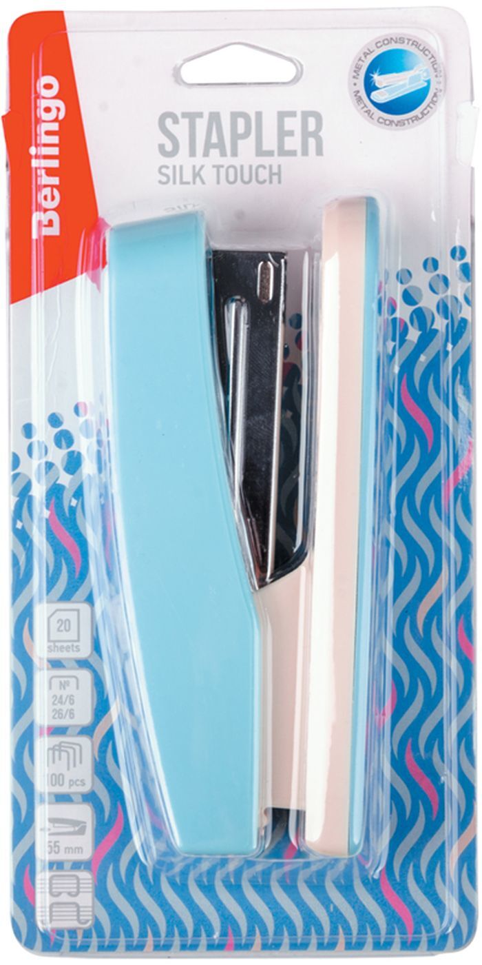 Степлер Berlingo Silk Touch, до 20 листов, H2026, голубой