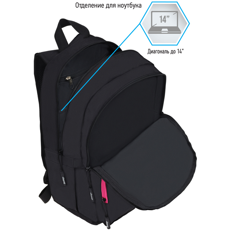 Рюкзак Berlingo Color blocks Black pink, 2 отделения, 4 кармана, уплотненная спинка, RU08098