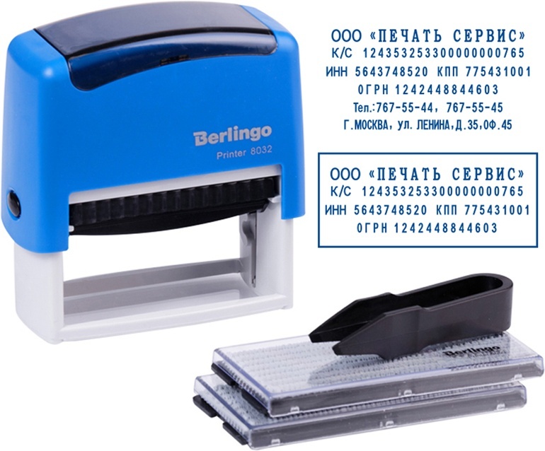 Штамп Berlingo Printer 8032, самонаборный, 6 строк, синий, 70 х 32 мм