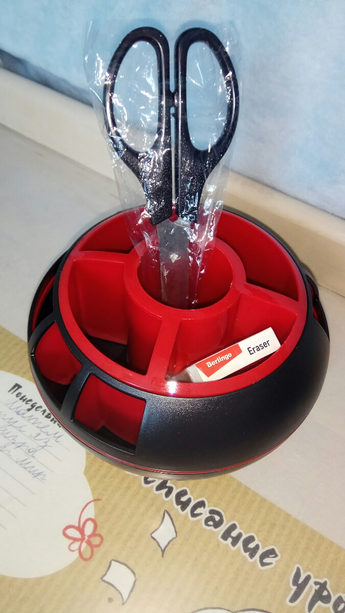 Настольный органайзер Berlingo Apex, черный/красный, 9 предметов, вращающийся, 15*15*8,5 см