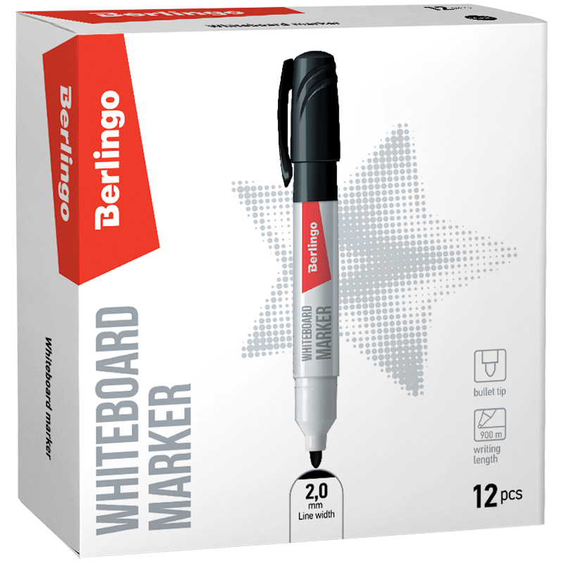 Маркер для белых досок Berlingo "Uniline WB200", черный, пулевидный, 2мм, 12шт