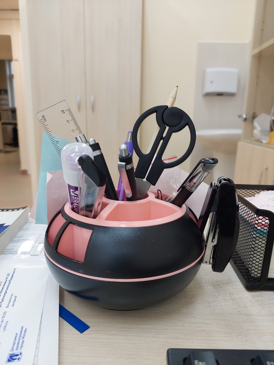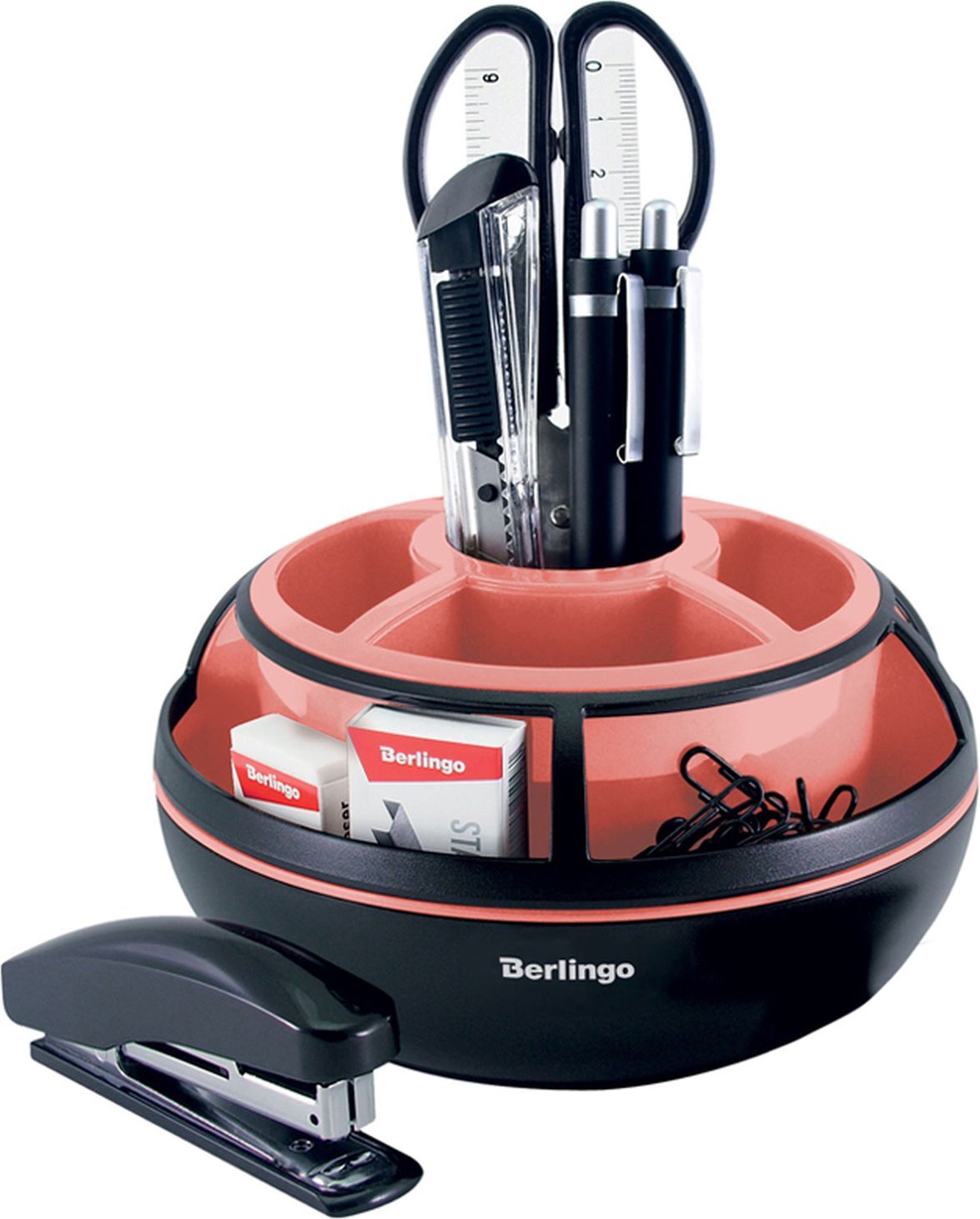 Настольный органайзер Berlingo Instinct, черный/фламинго, 9 предметов, вращающийся, 15*15*8,5 см