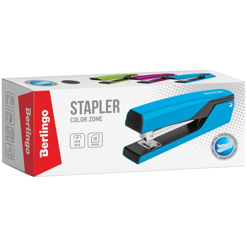 Степлер Berlingo №24-6, 26-6, "Color Zone" до 20 листов, металлический корпус, розовый (DSn_20114)